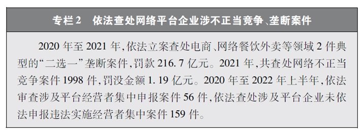 保障公平競(jìng)爭(zhēng)的網(wǎng)絡(luò)市場(chǎng)環(huán)境。隨著網(wǎng)絡(luò)平臺(tái)企業(yè)不斷擴(kuò)展自身的體量和實(shí)力,“掐尖式并購(gòu)”、無(wú)正當(dāng)理由屏蔽鏈接、“二選一”、大數(shù)據(jù)殺熟、流量挾持等妨礙市場(chǎng)公平競(jìng)爭(zhēng)的問(wèn)題也逐漸凸顯。中國(guó)積極回應(yīng)人民群眾訴求,在支持網(wǎng)絡(luò)平臺(tái)企業(yè)創(chuàng)新發(fā)展的同時(shí),依法規(guī)范和引導(dǎo)資本健康發(fā)展,采取多種治理平臺(tái)競(jìng)爭(zhēng)失序的執(zhí)法舉措。聚焦大型網(wǎng)絡(luò)平臺(tái)價(jià)格欺詐、低價(jià)傾銷等重點(diǎn)問(wèn)題,通過(guò)行政約談、行政指導(dǎo)、規(guī)則指引等多種監(jiān)管手段,整治壟斷和不正當(dāng)競(jìng)爭(zhēng)行為。圍繞民生、金融、科技、傳媒等重點(diǎn)行業(yè),依法審查涉及平臺(tái)經(jīng)營(yíng)者集中案件,防止可能妨礙市場(chǎng)競(jìng)爭(zhēng)和創(chuàng)新發(fā)展的并購(gòu)行為,引導(dǎo)網(wǎng)絡(luò)平臺(tái)企業(yè)增強(qiáng)合規(guī)意識(shí),規(guī)范自身經(jīng)營(yíng)行為。通過(guò)一系列行動(dòng),平臺(tái)經(jīng)濟(jì)市場(chǎng)環(huán)境不斷優(yōu)化,公平競(jìng)爭(zhēng)的行業(yè)生態(tài)穩(wěn)步向好,中小企業(yè)獲得更廣闊的發(fā)展空間,統(tǒng)一、開(kāi)放、公平、競(jìng)爭(zhēng)、有序的網(wǎng)絡(luò)競(jìng)爭(zhēng)環(huán)境正在形成。