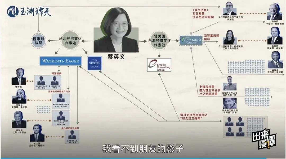 趁熱再打鐵,玉淵譚天繼續(xù)抽絲剝繭,以數(shù)據(jù)視頻《起底!臺當(dāng)局“朋友圈”大公開》深扒臺當(dāng)局近兩年在美國登記在冊的游說方式與對象,用翔實(shí)的數(shù)據(jù),揭秘了臺當(dāng)局能接觸到的美國會人員多為邊緣人的真相,結(jié)合送“保護(hù)費(fèi)”、送“官職”等賣臺行為實(shí)錘,讓臺當(dāng)局在所謂“美臺關(guān)系”中的卑微姿態(tài)展露無遺。
