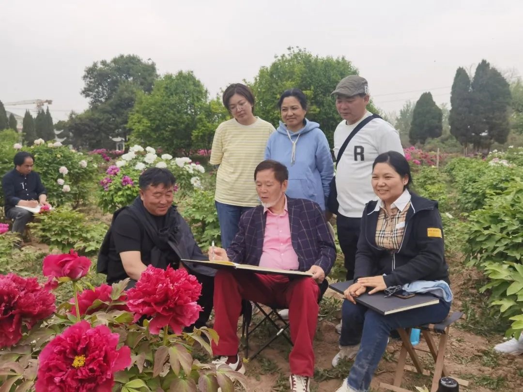 自1975年29歲的何水法先生以赤子之心,首次只身赴菏澤,48年來,為畫牡丹,寫其牡丹之真情、寫其牡丹之風(fēng)骨,寫其國花繁榮富強(qiáng)之真諦。用何水法先生世紀(jì)之初所言:“寫生是畫家與生活的對(duì)話”。藝術(shù)家也要不斷地站在時(shí)代的前列,站在歷史的高位,不斷思索,不斷地刷新繪畫語言。要緊隨時(shí)代發(fā)展的需要,不斷突破新題材、突破新意境。因此他今年又親率眾學(xué)生第十五次來菏澤深入考察,發(fā)揮示范引領(lǐng)作用,體驗(yàn)生活、開闊思維,為謳歌人民、謳歌新時(shí)代,進(jìn)行新的藝術(shù)創(chuàng)造。