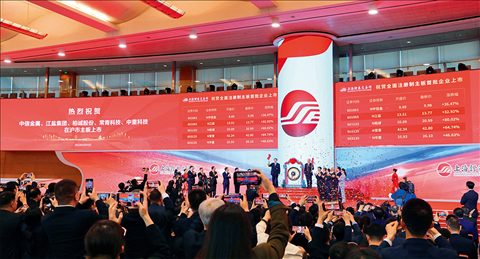 滬深交易所主板注冊制首批企業(yè)上市儀式現(xiàn)場(2023年4月10日攝) 方喆攝/本刊