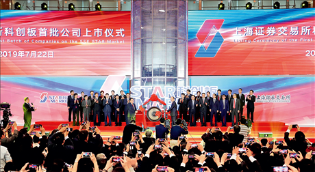上海證券交易所舉行的科創(chuàng)板首批公司上市儀式現(xiàn)場(2019年7月22日攝) 方喆攝/本刊