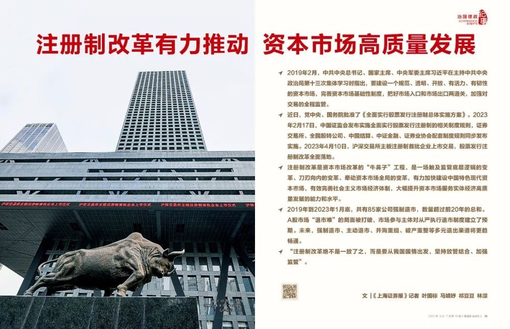 全面注冊制突出“把選擇權(quán)交給市場”,是更好處理“有效市場”和“有為政府”關(guān)系的真招實(shí)招,是服務(wù)中國式現(xiàn)代化、構(gòu)建高水平社會(huì)主義市場經(jīng)濟(jì)體制的題中應(yīng)有之義。