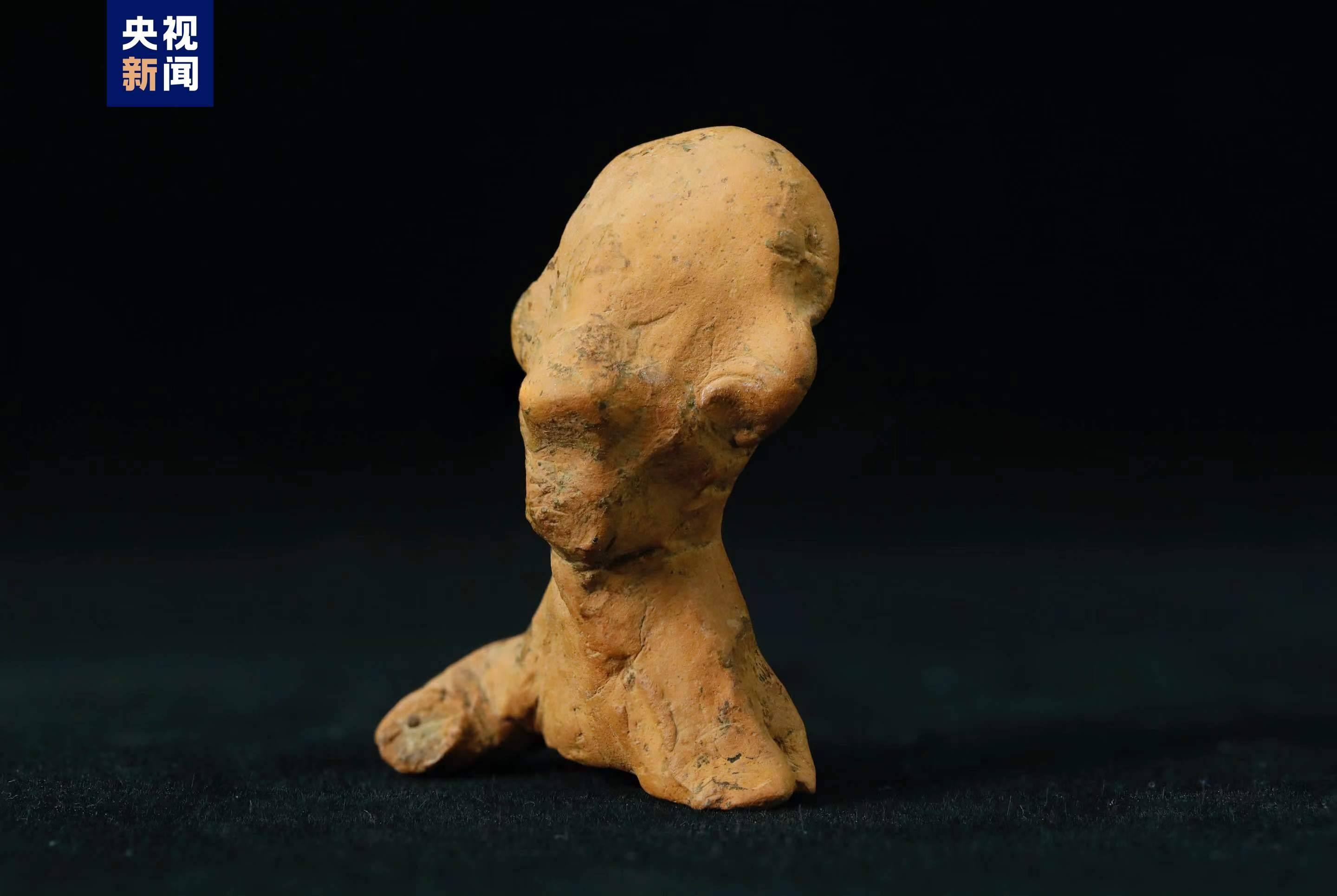 該陶塑人像出土于石家河三房灣遺址地層,距今約4000年。出土?xí)r有殘缺,表面有附著物。文物修復(fù)專家在觀察陶塑上是否有一些遺留痕跡時,發(fā)現(xiàn)了疑似指紋痕跡。