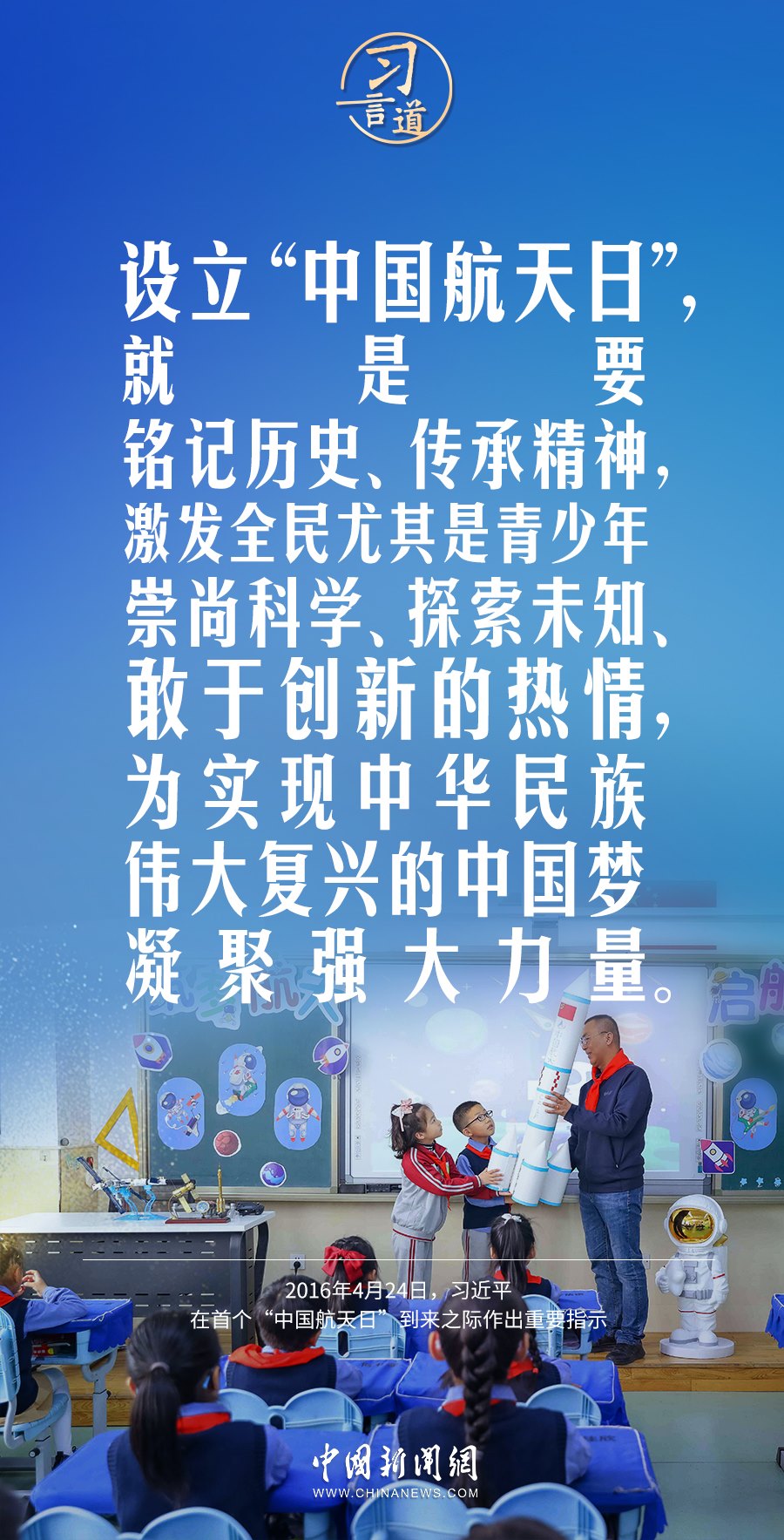 4月24日是中國(guó)航天日,今年的主題為“格物致知,叩問蒼穹”。習(xí)近平總書記高度重視航天事業(yè)發(fā)展,多次鼓勵(lì)青少年要崇尚科學(xué)、敢于有夢(mèng)。