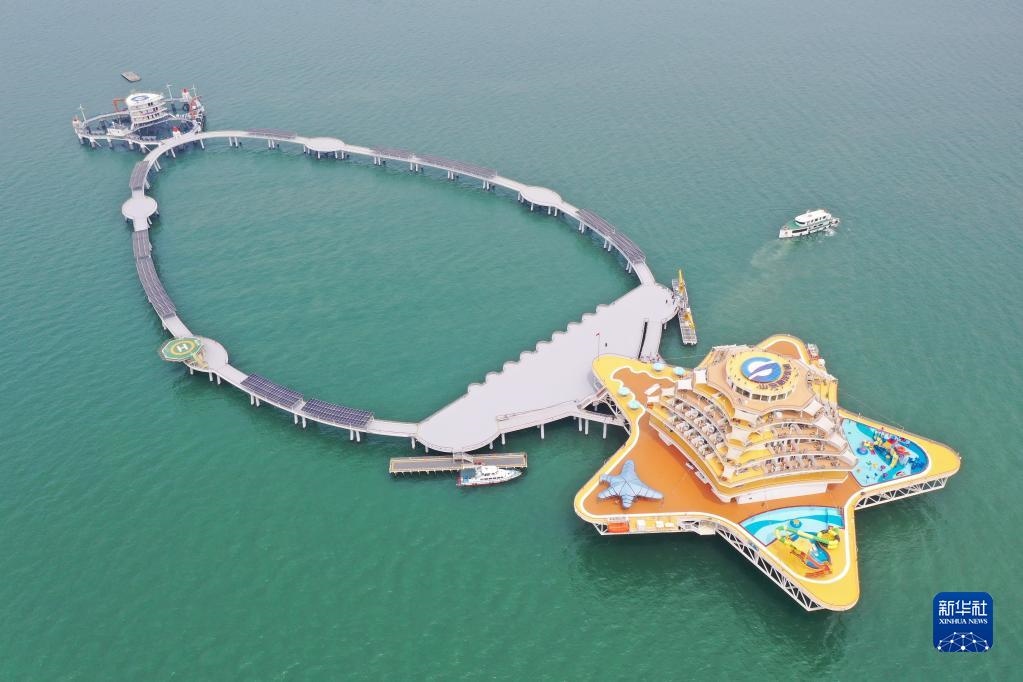 當(dāng)日,位于山東省煙臺市萊山區(qū)的“耕海1號”海洋牧場綜合體二期項目投入運營?!案?號”集漁業(yè)養(yǎng)殖、海上觀光、休閑垂釣、餐飲住宿、科研科普等于一體,創(chuàng)新性實現(xiàn)現(xiàn)代海洋漁業(yè)、海洋工程技術(shù)和海洋文化旅游產(chǎn)業(yè)深度有機融合。新華社記者 李紫恒 攝