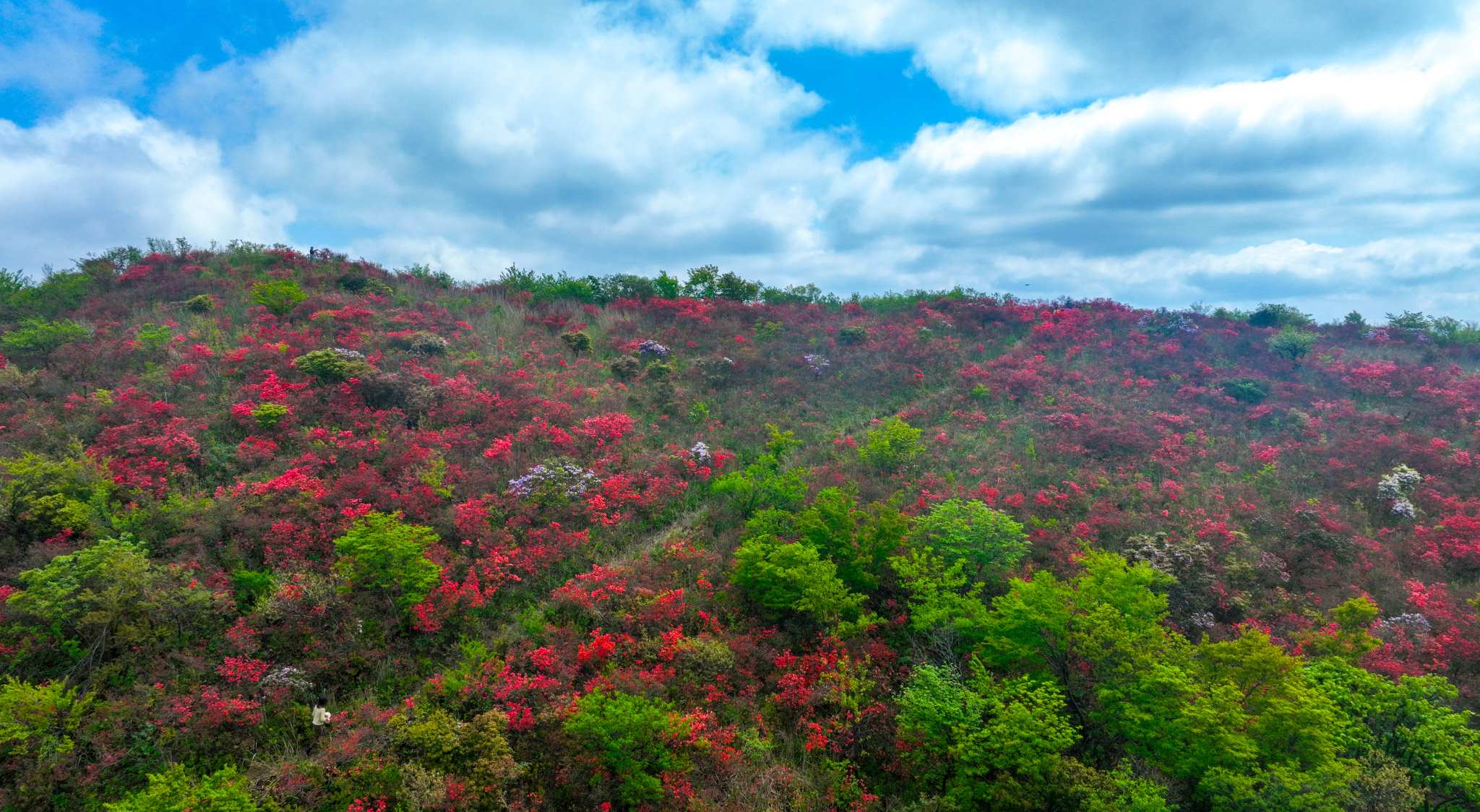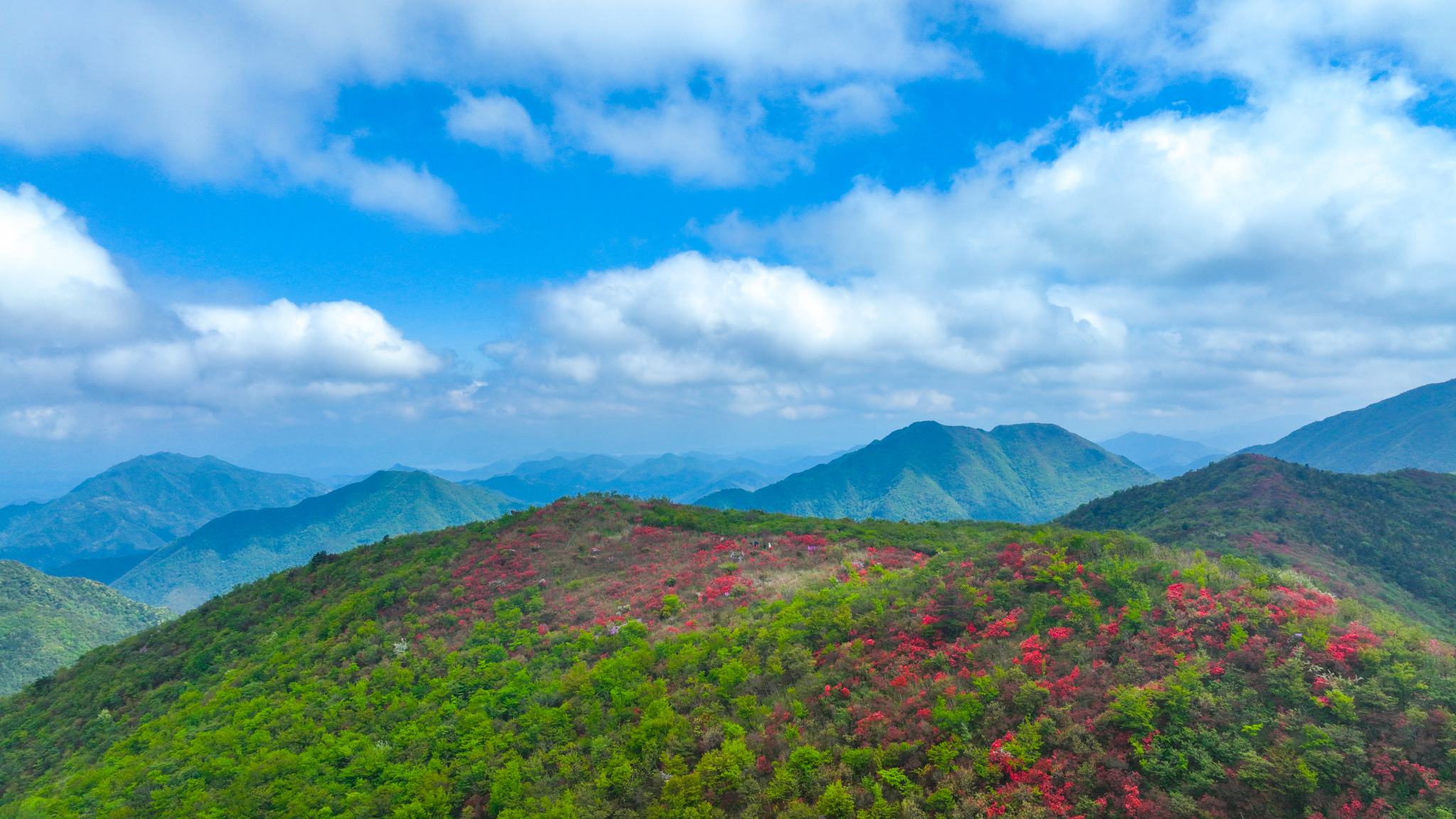 2023年4月26日,杭州,淳安縣楓樹嶺鎮(zhèn)白馬乳洞山自然村,海拔1320米的黃茅尖上千畝野生杜鵑花開正艷。視覺中國