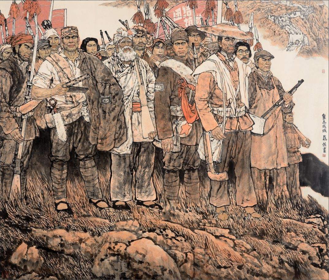 司空?qǐng)D《詩二十四品》“勁健”曰:“行神如空,行氣如虹,巫峽千尋,走云連風(fēng),飲真茹強(qiáng),蓄素守中”。以“勁健”來概括蔡超藝術(shù)的整體風(fēng)格,或許也是極為恰當(dāng)?shù)?。盡管蔡超各個(gè)不同時(shí)期的藝術(shù)創(chuàng)作有著不盡相同的追求和面貌,但以“勁健”為核心的審美特質(zhì)從未發(fā)生過變化。無論是早期的《農(nóng)村調(diào)查》(1972 年)、《陳毅出山》(1979 年),還是中期的《建設(shè)者》(1984 年)、《吊裝》(1994 年)、《鐵臂》(1999 年),以及近年的“一帶一路”系列,從革命歷史畫創(chuàng)作到主題性繪畫,再到以抒發(fā)自我胸臆為特征的風(fēng)情小品,蔡超均自覺地將勁健的風(fēng)格特征融入人物塑造及畫面營(yíng)造。這種“勁健”既是藝術(shù)家個(gè)體的美學(xué)理想,也無不映射著一個(gè)時(shí)代的精神與氣象。蔡超命運(yùn)多舛,他以過人的天賦和驚人的努力,不僅書寫了個(gè)人奮斗的頑強(qiáng)歷史,更書寫了江西美術(shù)的輝煌篇章。司馬遷曾言:“《詩》三百篇,大底圣賢發(fā)憤之所為作也 。此人皆意有所郁結(jié),不得通其道,故述往事、思來者”,所謂“以舒其憤,思垂空文以自見”是也。蔡超童年時(shí)代被庸醫(yī)所誤,落下終生殘疾,在他勁健如虹的畫面中,我們所看到的,不正是其發(fā)憤以抒情的神氣和氣度嗎?文章憎命達(dá),蔡超的藝術(shù)人生,真切地回應(yīng)了自屈原、司馬遷以來“堅(jiān)志不忍、重著自明”的偉大傳統(tǒng)。