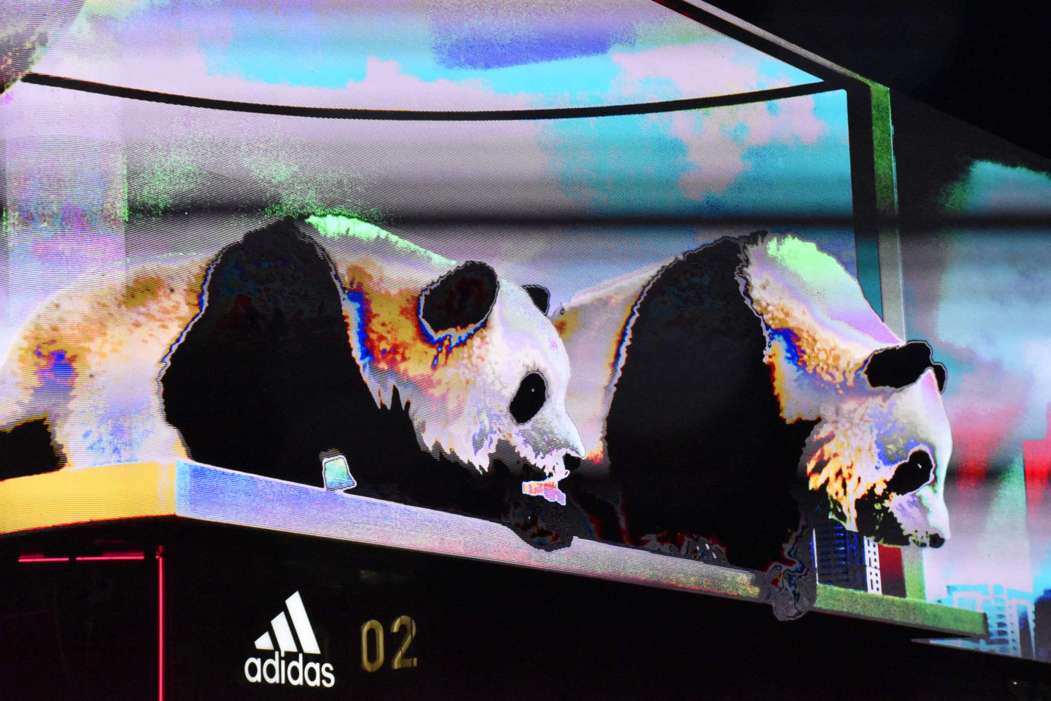 2023年4月24日,成都,太古里步行街的裸眼3D屏上,大熊貓萌態(tài)十足。視覺中國