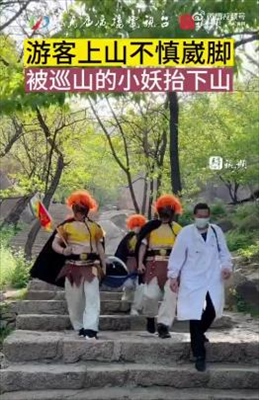 ·女子登山崴腳被巡山小妖抬下山,網友:享受了唐僧的待遇。