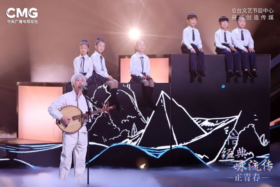 “逝者如斯夫,不舍晝夜?!痹跁r光的流逝中,最值得懷念的是那一去不復(fù)返的青春。無數(shù)文人墨客通過文字去珍藏時光的記憶,去尋找青春的蹤跡。“一葉漁船兩小童,收篙停棹坐船中”,宋朝詩人楊萬里用一首清新自然的《舟過安仁》記錄美好童年。而對于很多現(xiàn)代人來說,童謠寄托著童年的回憶?!皩ぶ{計劃”項目發(fā)起人小河將楊萬里的詩詞巧妙改編成童謠,帶來充滿童趣的《搖船》舞臺。當(dāng)天真爛漫的孩童將詩詞娓娓唱出,瞬間帶領(lǐng)觀眾穿越回詩中場景,也穿越回記憶中的童年。現(xiàn)場還迎來一位特殊的嘉賓——84歲老人何洪瑞。他與小河還有孩子們一同唱響了記憶深處的童謠《盧溝橋》,此刻,跨越時間的永恒情感就這樣在音符中碰撞、交融。