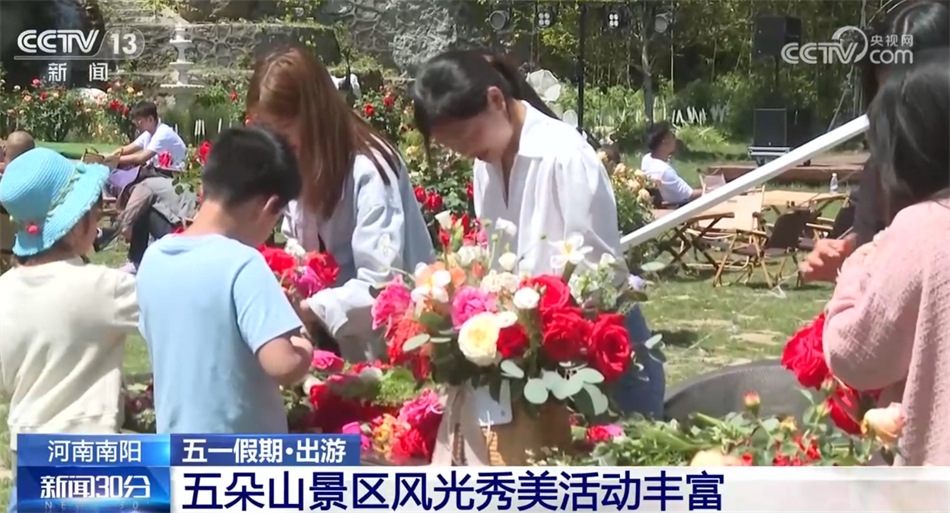 在河南南陽市五朵山景區(qū),“五一”假期吸引了大批游客。今天上午,入園的游客就已經(jīng)超過了1萬人。眼下正是南陽月季博覽會召開的時間,五朵山景區(qū)舉辦了一系列的賞花采風活動,景區(qū)內(nèi)還組織了鄉(xiāng)村音樂節(jié)、漢服文化節(jié)和非遺民俗的表演,讓人們在欣賞美麗的自然風光之余,感受傳統(tǒng)文化的魅力。