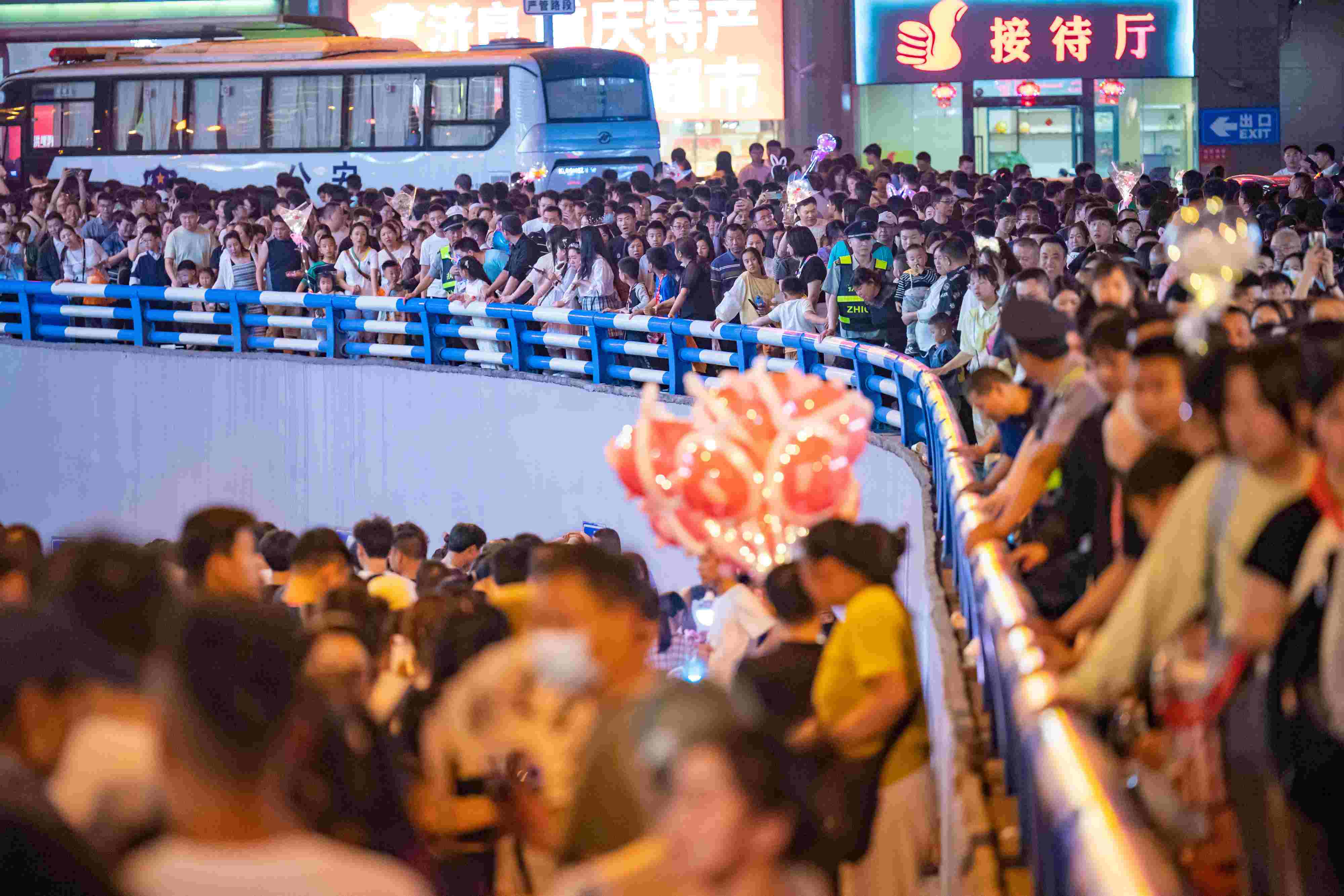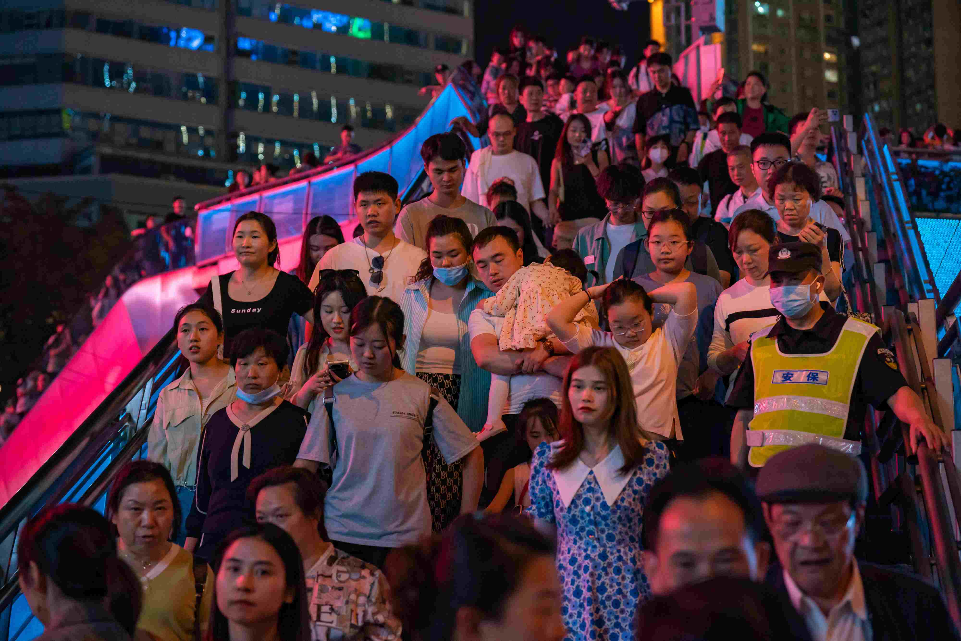 2023年4月30日,重慶,洪崖洞等熱門景點(diǎn)迎來游客高峰,千廝門大橋等多條主干道開啟實(shí)行交通管制,方便游客出行。 視覺中國(guó)