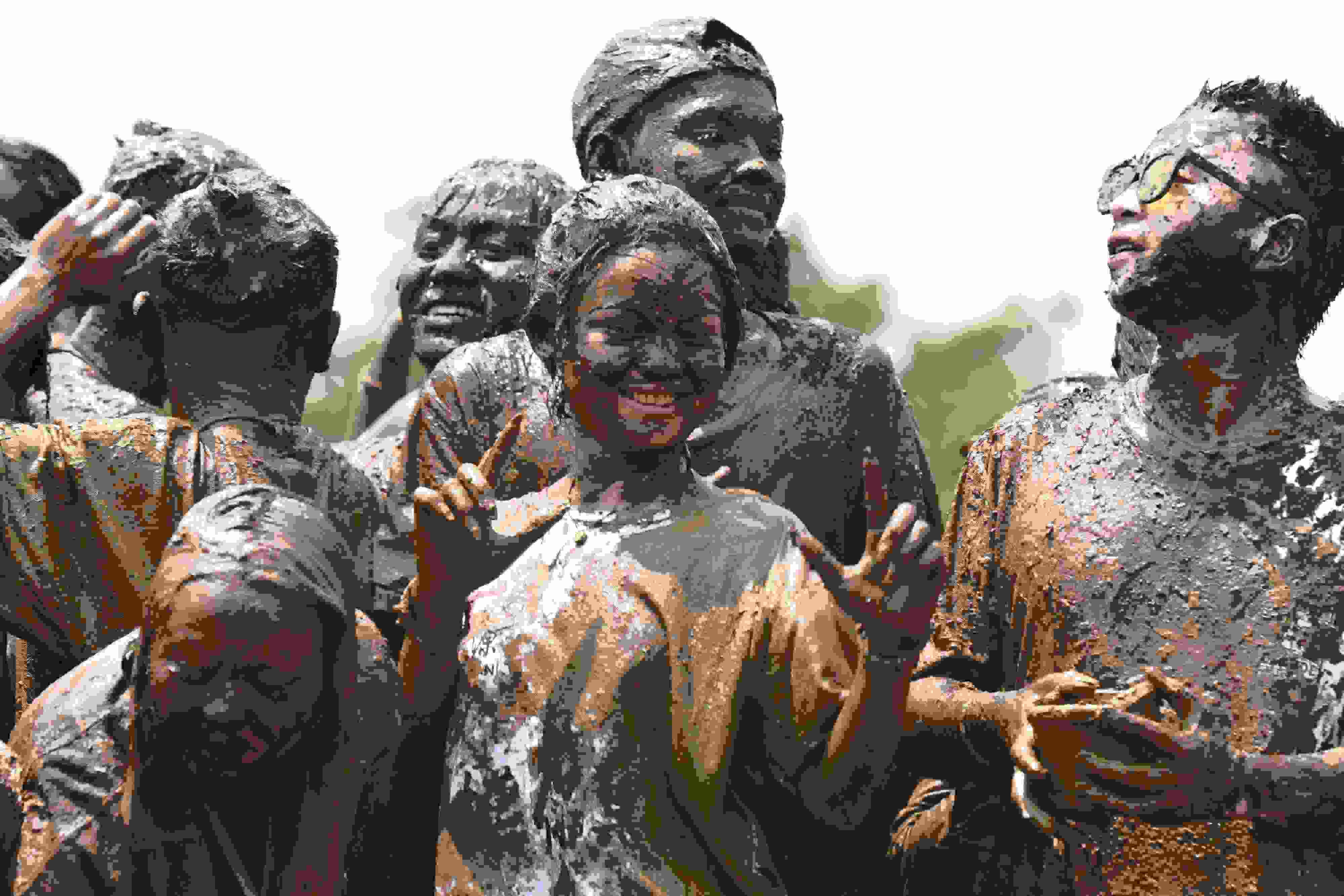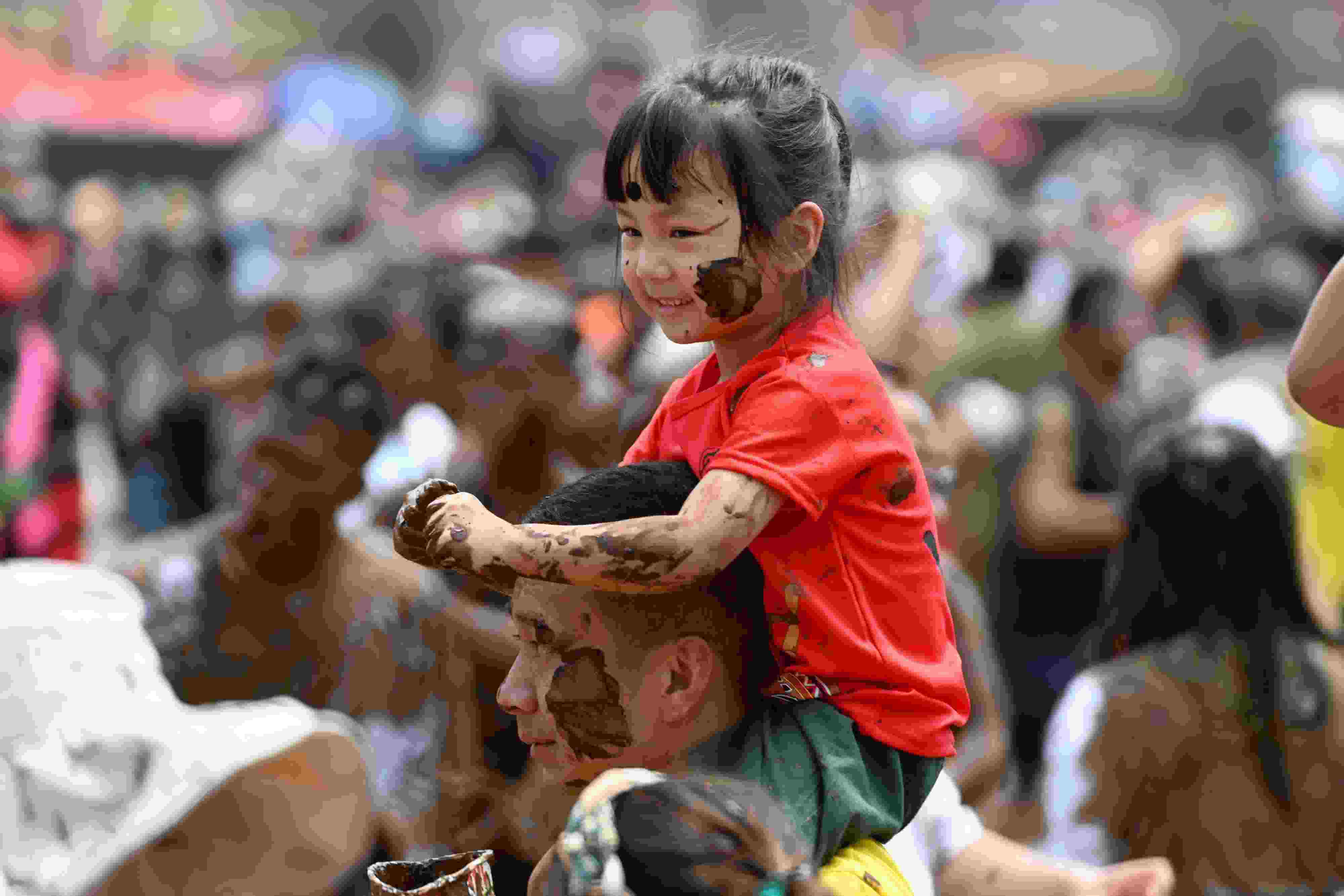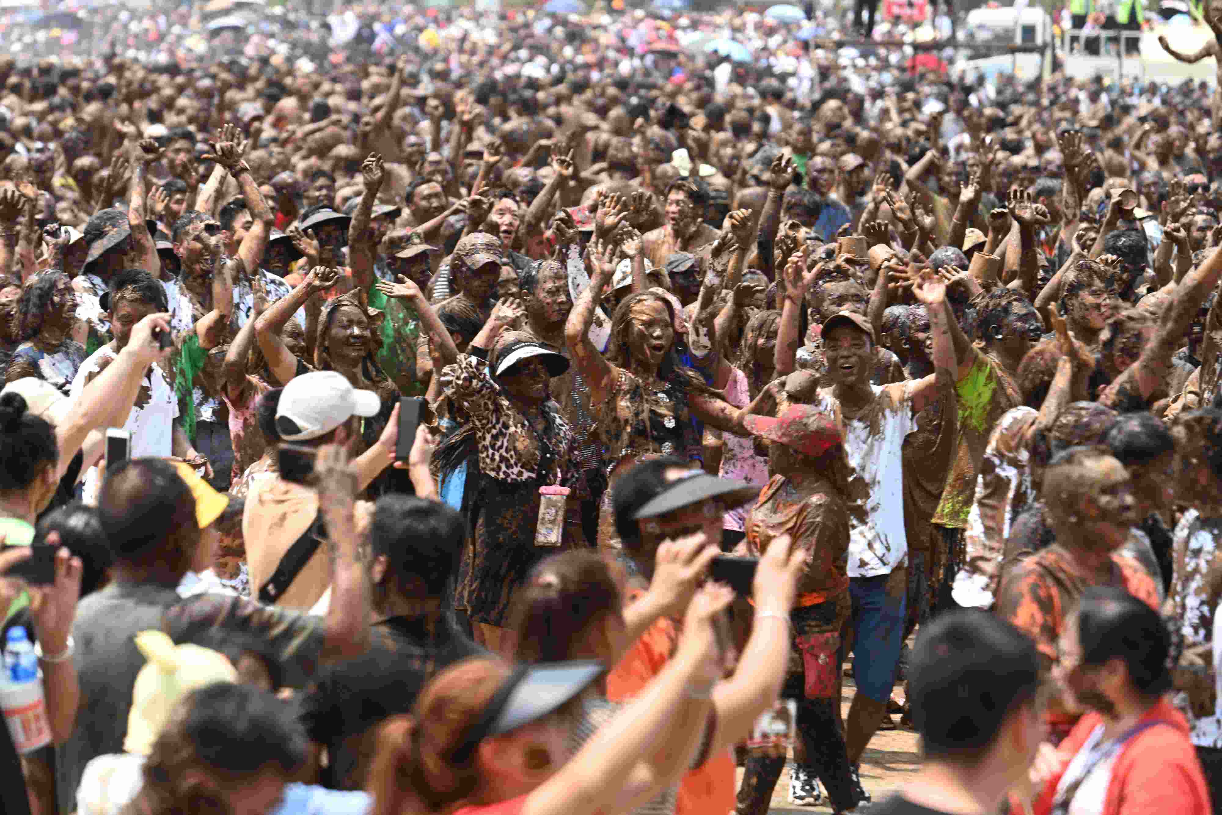 2023年4月30日,云南臨滄,游客相互抹泥表示祝福。當(dāng)日,2023年中國(guó)佤族司崗里摸你黑狂歡節(jié)在云南省臨滄市滄源佤族自治縣啟幕。人們用天然原料“娘布洛”配置而成的涂料相互涂抹表示祝福,摸得越黑,代表快樂幸福越長(zhǎng)久。 視覺中國(guó)