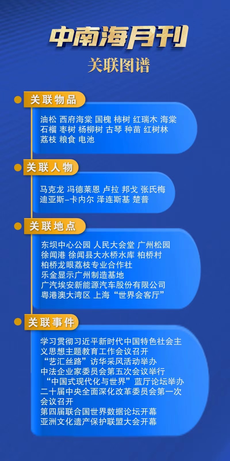 關(guān)聯(lián)地點中的徐聞港、柏橋村等指向總書記的考察地。今年是全面貫徹黨的二十大精神開局之年,習(xí)近平總書記兩會后首次地方考察選擇了廣東。他對廣東的干部群眾說:“廣東是一個窗口。到廣東來看一看,了解一下黨的二十大以來都有哪些新進展新氣象?!?/p>