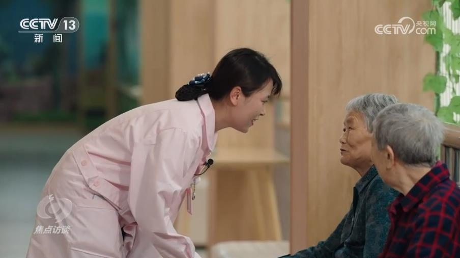 重慶市江津區(qū)雙福街道養(yǎng)老服務(wù)中心護理員熊曉麗:“這個時候我還是一樣的,先陪伴,先讓他對我產(chǎn)生依賴,然后我在跟他聊天的過程當(dāng)中才發(fā)現(xiàn),原來王爺爺以前喜歡唱歌?!?/p>