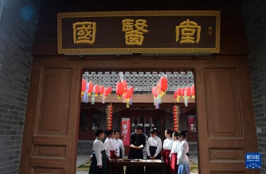 3月28日,參加公益研學(xué)活動(dòng)的學(xué)生在滄州中西醫(yī)結(jié)合醫(yī)院南川老街國(guó)醫(yī)堂辨識(shí)中藥。