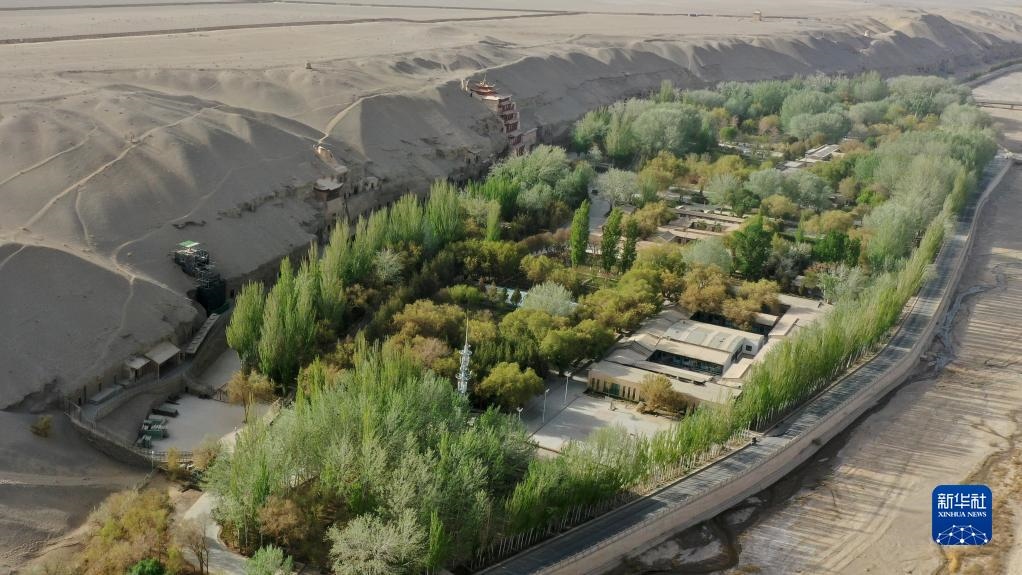 4月25日拍攝的莫高窟窟區(qū)(無人機照片)。