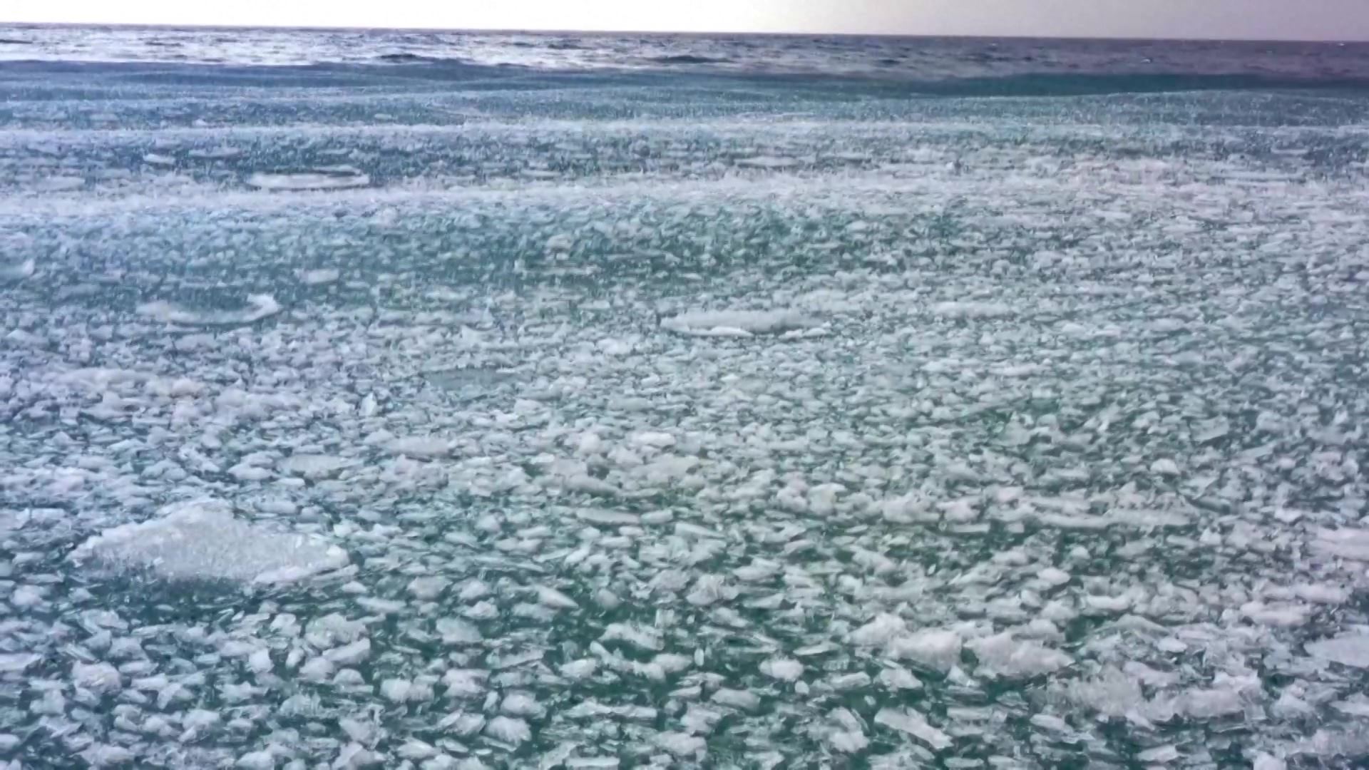新疆賽里木湖冰層碎裂現(xiàn)“冰推”景觀