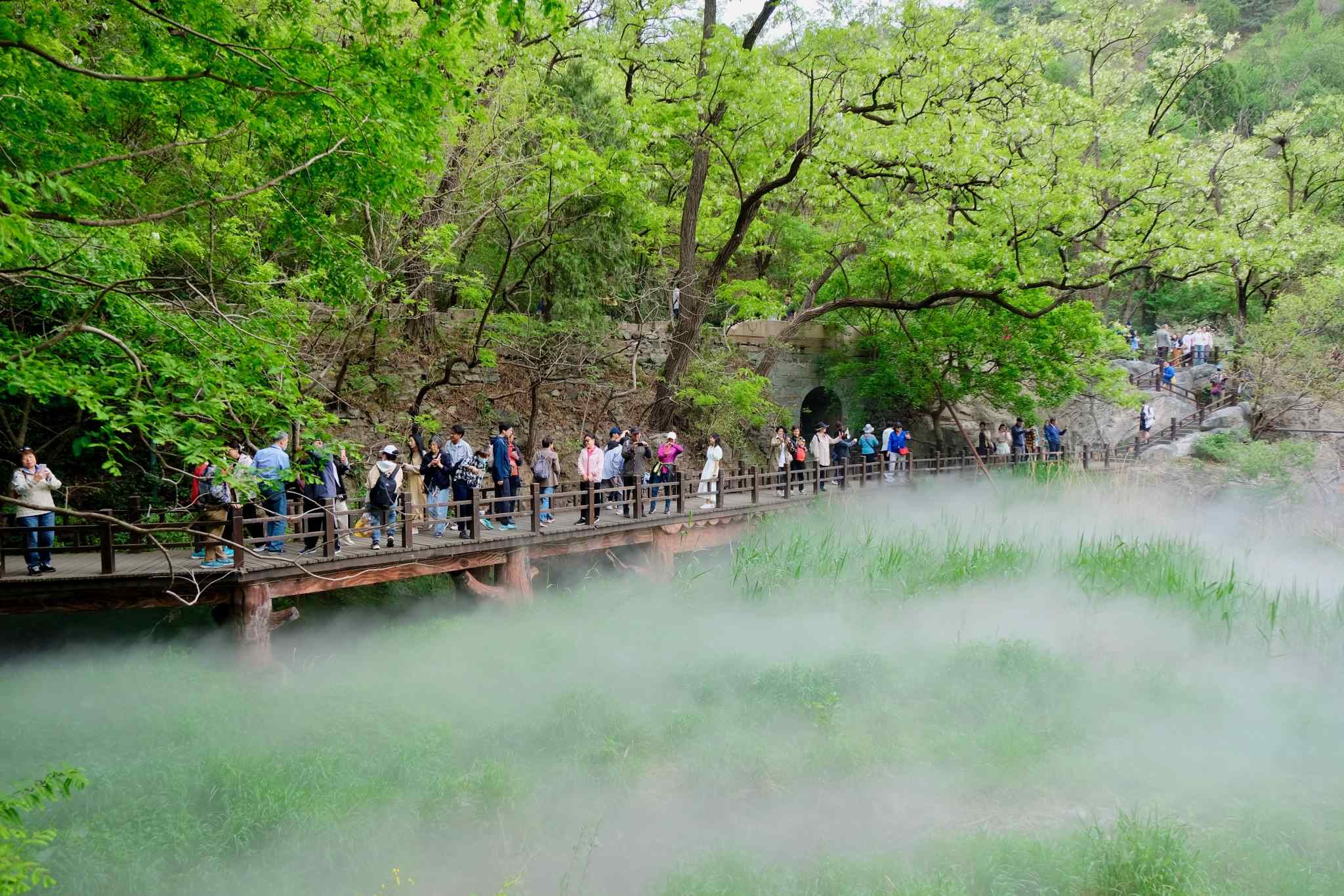 2023年5月6日,北京,立夏時(shí)節(jié),萬物繁茂,國家植物園櫻桃溝景區(qū)“云霧繚繞”宛若“仙境”。視覺中國