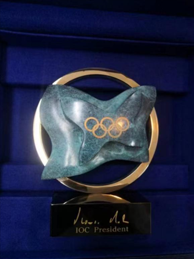 據(jù)介紹,該獎杯由被譽(yù)為“當(dāng)代米開朗基羅”的西班牙國寶級雕塑家Rosa Serra設(shè)計(jì)制作,基座配有現(xiàn)任國際奧委會主席巴赫的親筆簽名。該獎杯以在瑞士洛桑的國際奧委會總部大樓“奧林匹克之家”為原型設(shè)計(jì),大樓為和平鴿造型,象征著和平與友誼,是奧林匹克運(yùn)動傳遞的最重要信息之一。據(jù)悉,“奧林匹克之家”大樓于2019年6月23日國際奧林匹克日正式啟用。