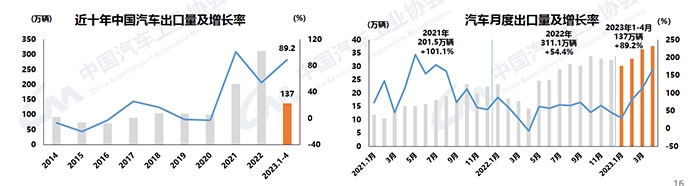 中新網(wǎng)5月11日電 (中新財(cái)經(jīng) 葛成)11日,中汽協(xié)發(fā)布汽車產(chǎn)銷數(shù)據(jù)。2023年4月,汽車產(chǎn)銷分別完成213.3萬輛和215.9萬輛,同比分別增長76.8%和82.7%;新能源汽車產(chǎn)銷分別完成64萬輛和63.6萬輛,同比均增長1.1倍;汽車企業(yè)出口37.6萬輛,同比增長1.7倍。