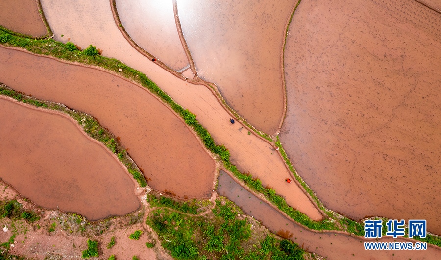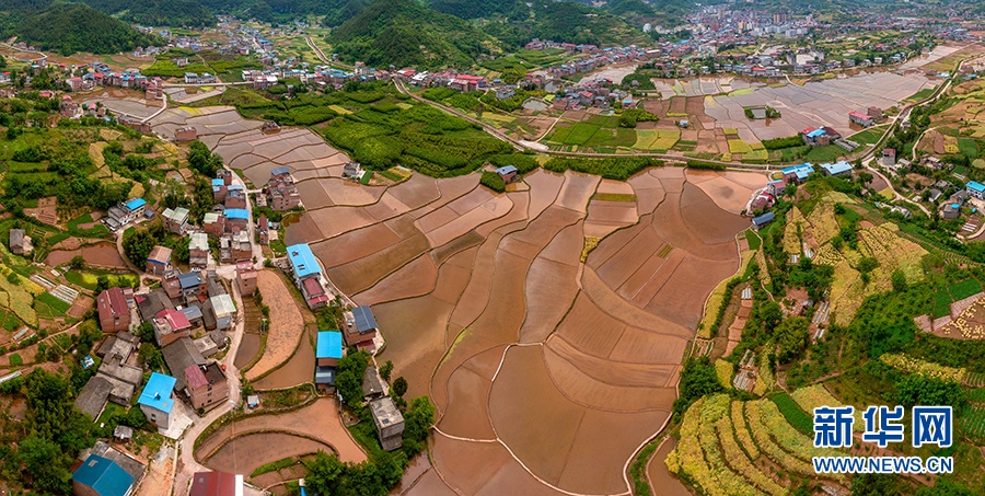初夏時(shí)節(jié)的廟宇鎮(zhèn),農(nóng)田里水盈盈。新華網(wǎng)發(fā)(朱云平 攝)