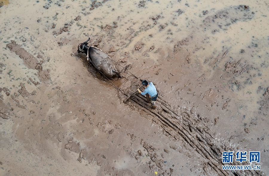 一場(chǎng)雨后,農(nóng)戶抓緊時(shí)間犁地。新華網(wǎng)發(fā)(朱云平 攝)