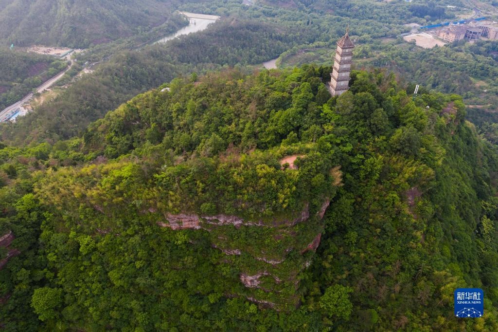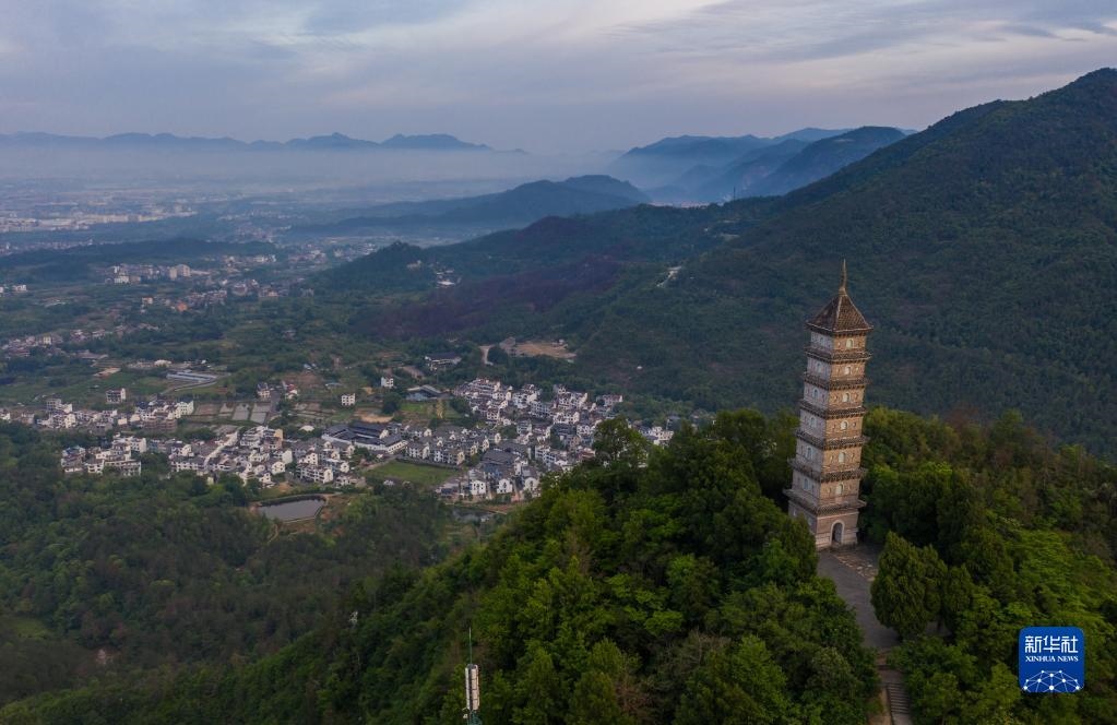 俯瞰天臺縣的赤城山及山頂?shù)牧哄?月16日攝,無人機照片)。