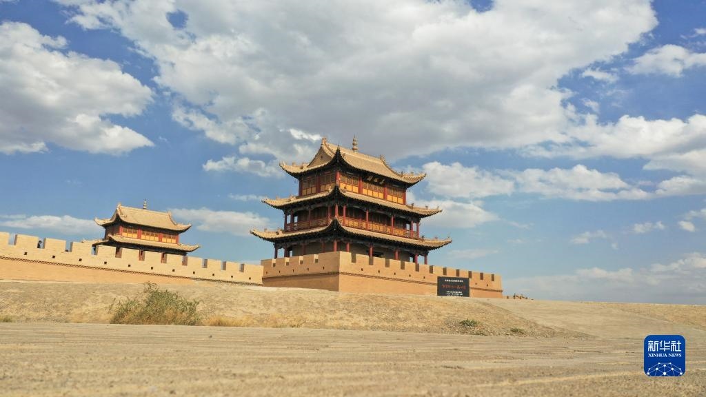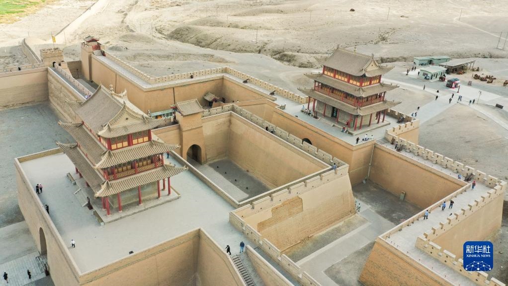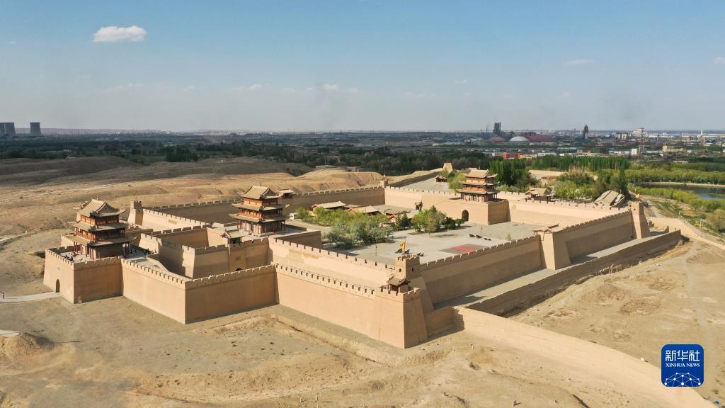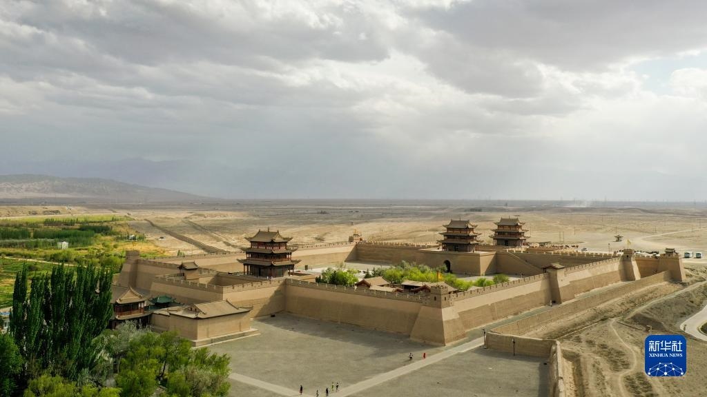 這是5月17日在甘肅省嘉峪關(guān)市拍攝的關(guān)城景區(qū)(無人機(jī)照片)。