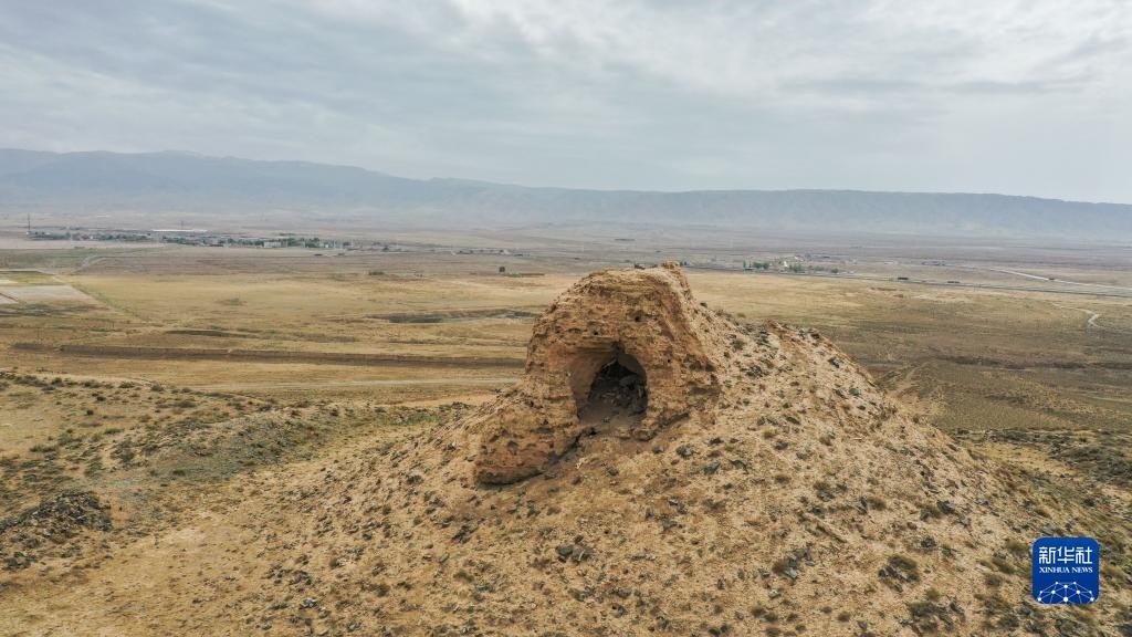 這是5月16日在甘肅省張掖市山丹縣拍攝的金山子烽火臺(tái)(無人機(jī)照片)。