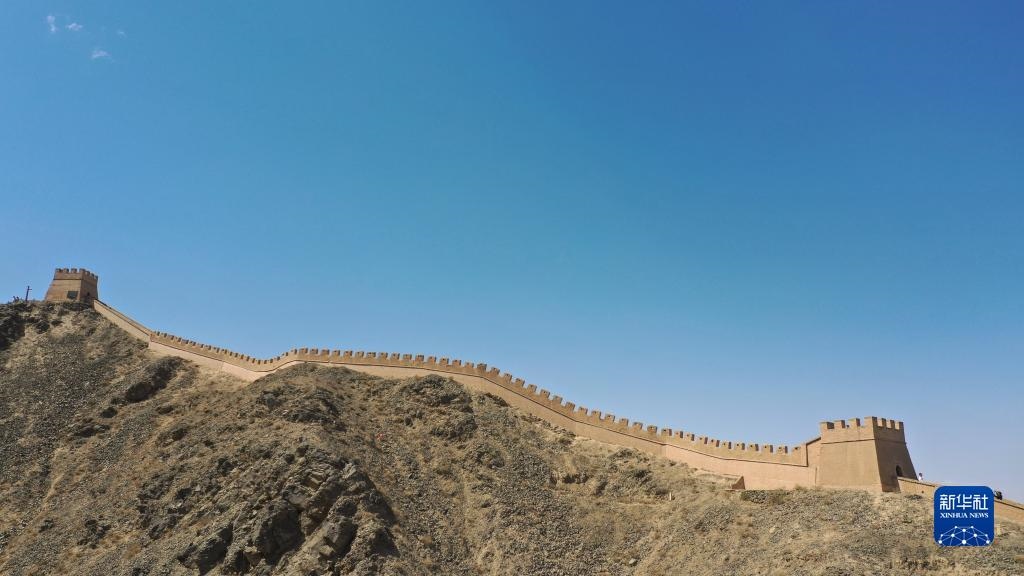 這是5月17日在甘肅省嘉峪關(guān)市拍攝的懸壁長城(無人機(jī)照片)。