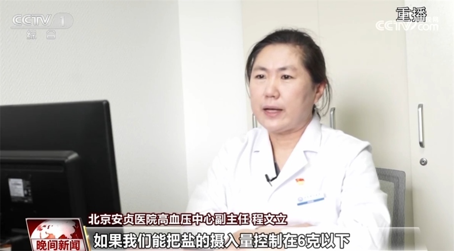 北京安貞醫(yī)院高血壓中心副主任 程文立:如果我們能把鹽的攝入量控制在6克以下,那么血壓能夠降低大概三到六個mmHg這么多,所以說食鹽對血壓影響其實是很大的。