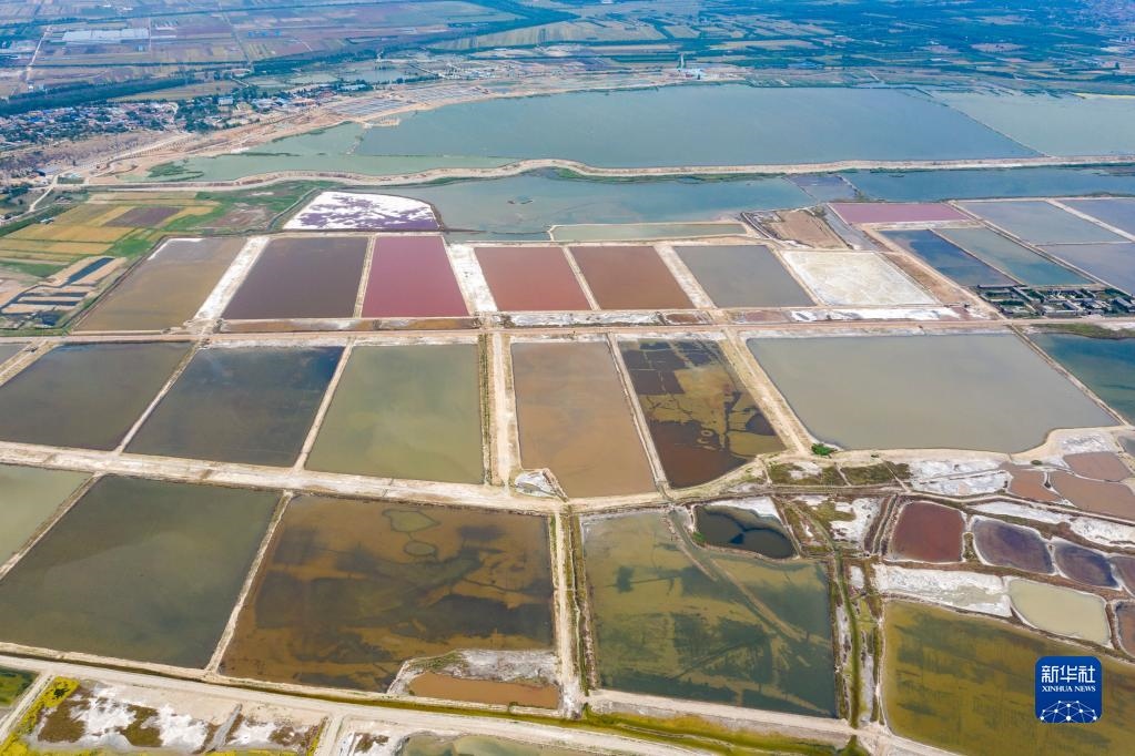 這是5月16日拍攝的運(yùn)城鹽湖一景(無人機(jī)照片)。