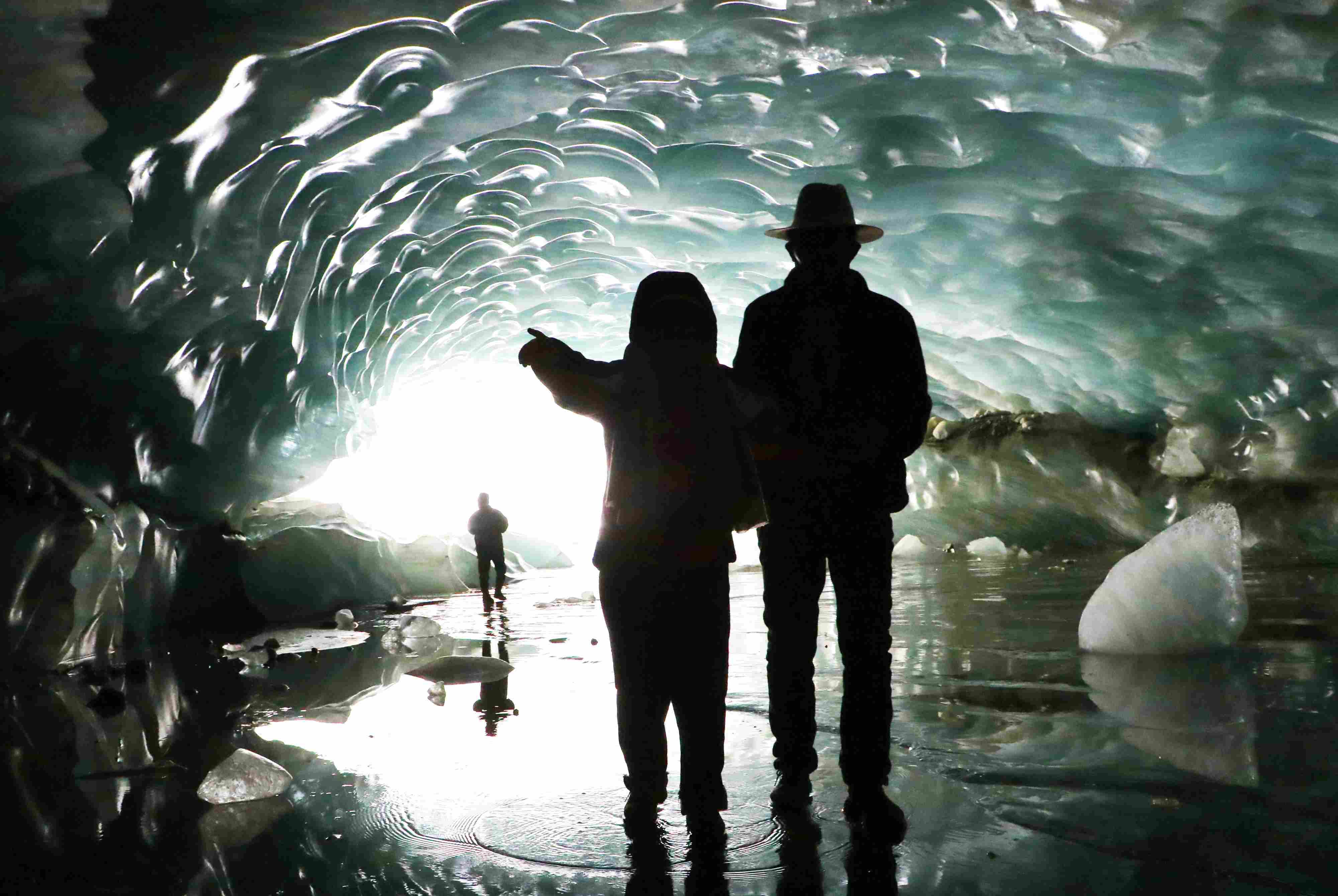 2023年5月21日,西藏昌都,游客在邊壩縣普玉一村游覽冰洞。 視覺(jué)中國(guó)
