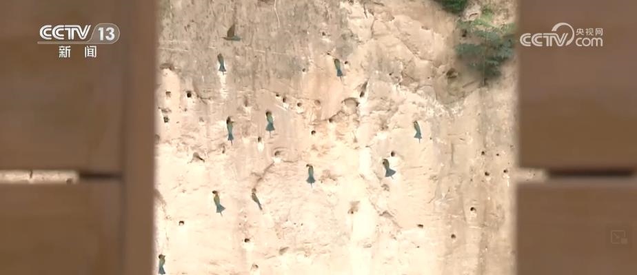 眼前,這些看上去很像是泥巴墻的建筑,其實是人工建造的候鳥巢穴。根據(jù)栗喉蜂虎的生活習(xí)慣,保護區(qū)工作人員專門在它們回來之前就對懸壁進行修整,讓這些美麗的小鳥更方便安家。