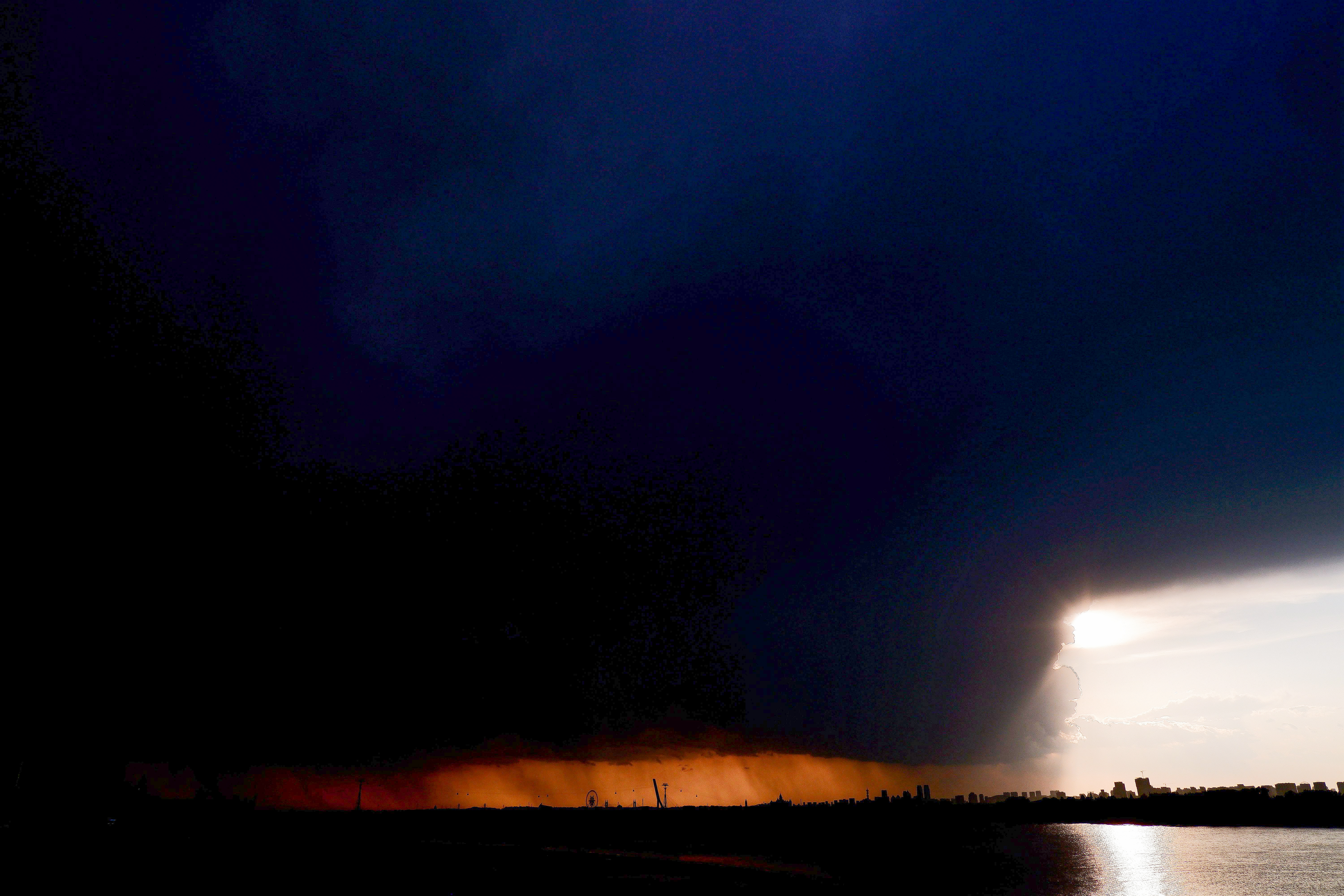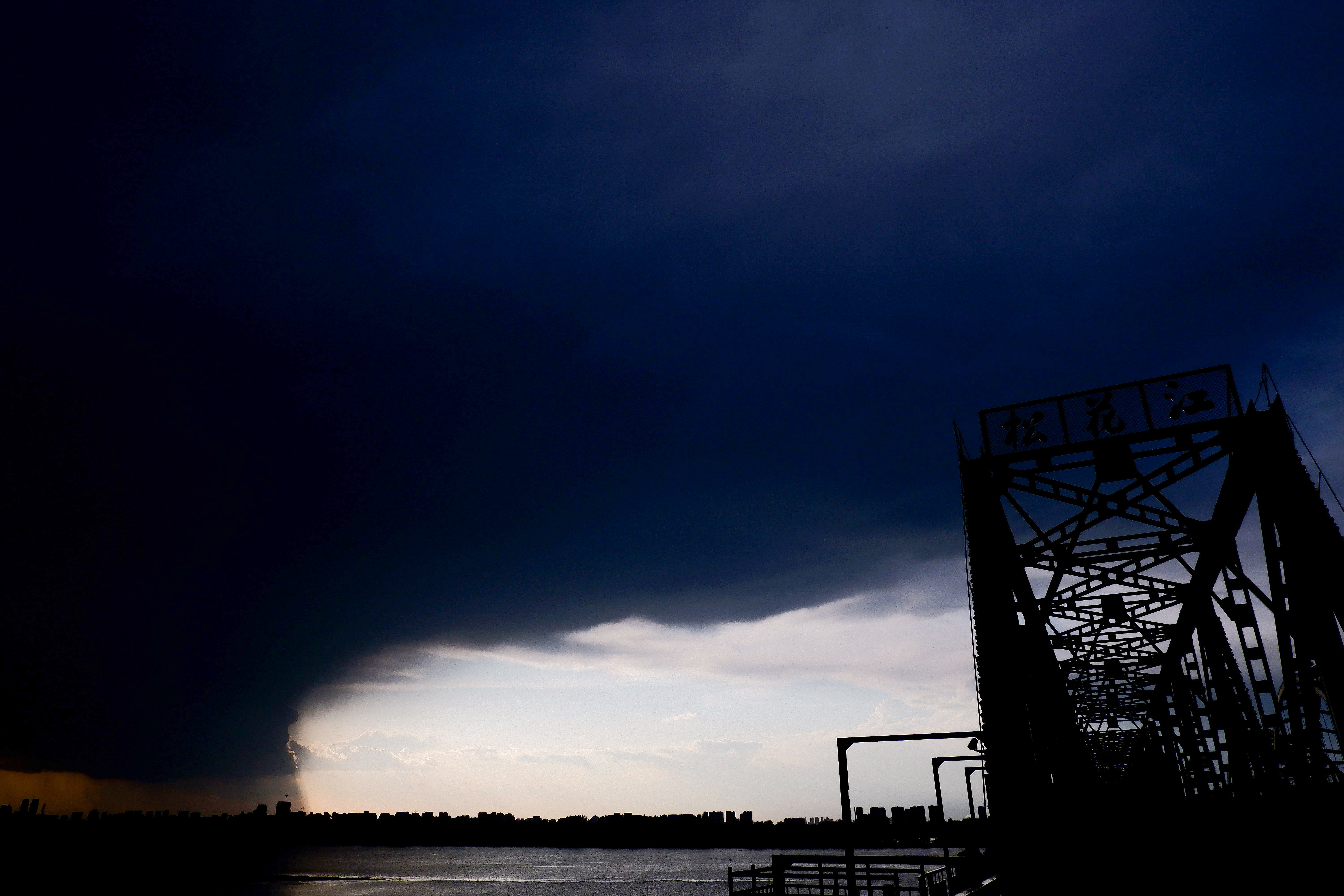 5月21日下午,黑龍江省哈爾濱市迎來(lái)強(qiáng)降雨天氣,整座城市被雷暴云籠罩,白晝?nèi)缫梗鹑缟涎菘苹么笃? (吳胡荼 攝)