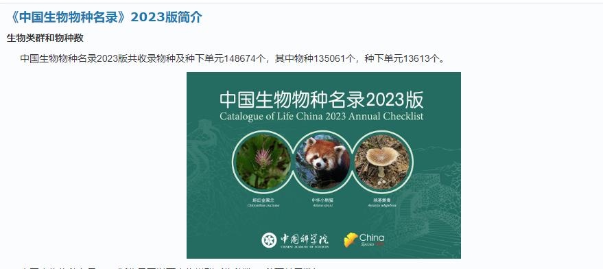 5月22日“國(guó)際生物多樣性日”當(dāng)天,中科院生物多樣性委員會(huì)在線發(fā)布了《中國(guó)生物物種名錄》2023版。據(jù)“物種2000中國(guó)節(jié)點(diǎn)”官網(wǎng)介紹,較2022版,2023版名錄新增10027個(gè)物種和354個(gè)種下單元。