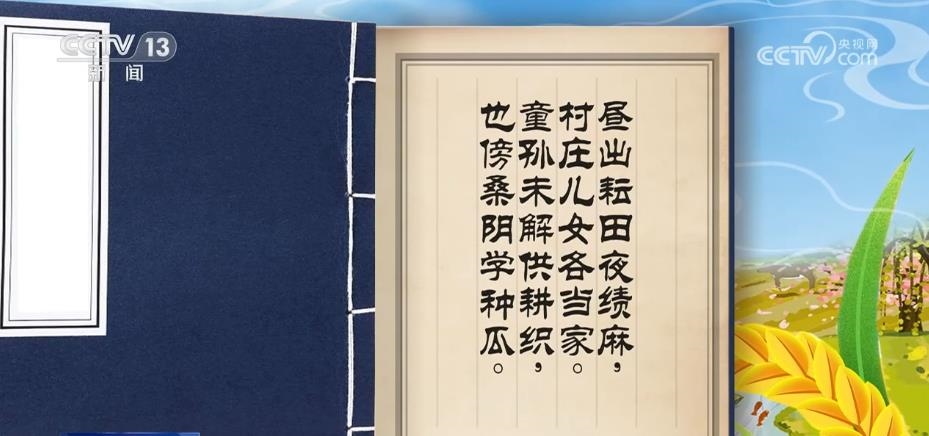 接下來寫道,“晝出耘田夜績麻,村莊兒女各當(dāng)家。童孫未解供耕織,也傍桑陰學(xué)種瓜”。描寫了“三夏”的繁忙景象,農(nóng)民白天去田里從事田間勞動(dòng),夜晚在家中搓麻線,村中男男女女各有各的家務(wù)勞動(dòng)。小孩子雖然不會(huì)耕田織布,也在桑樹蔭下學(xué)種瓜。