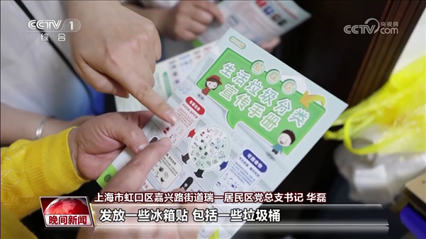 上海市虹口區(qū)嘉興路街道瑞一居民區(qū)黨總支書記 華磊:有的居民,他一開始就是不知道這個(gè)垃圾分類是怎么分類的。那么,我們就會挨家挨戶從黨員家庭開始做起,然后來帶頭。每個(gè)樓我們都有每個(gè)樓的志愿者來上門發(fā)放一些冰箱貼,包括一些垃圾桶,或者是小的一些蓋子等等的,來幫助大家。