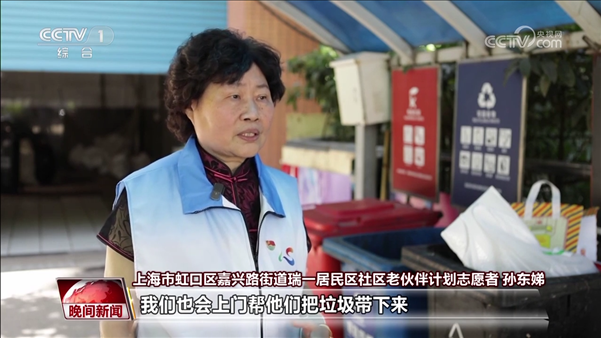 上海市虹口區(qū)嘉興路街道瑞一居民區(qū)社區(qū)老伙伴計(jì)劃志愿者 孫東娣:就是有些老人腿腳不方便,我們也會上門幫他們把垃圾帶下來,也會跟他們講一些這方面的知識。