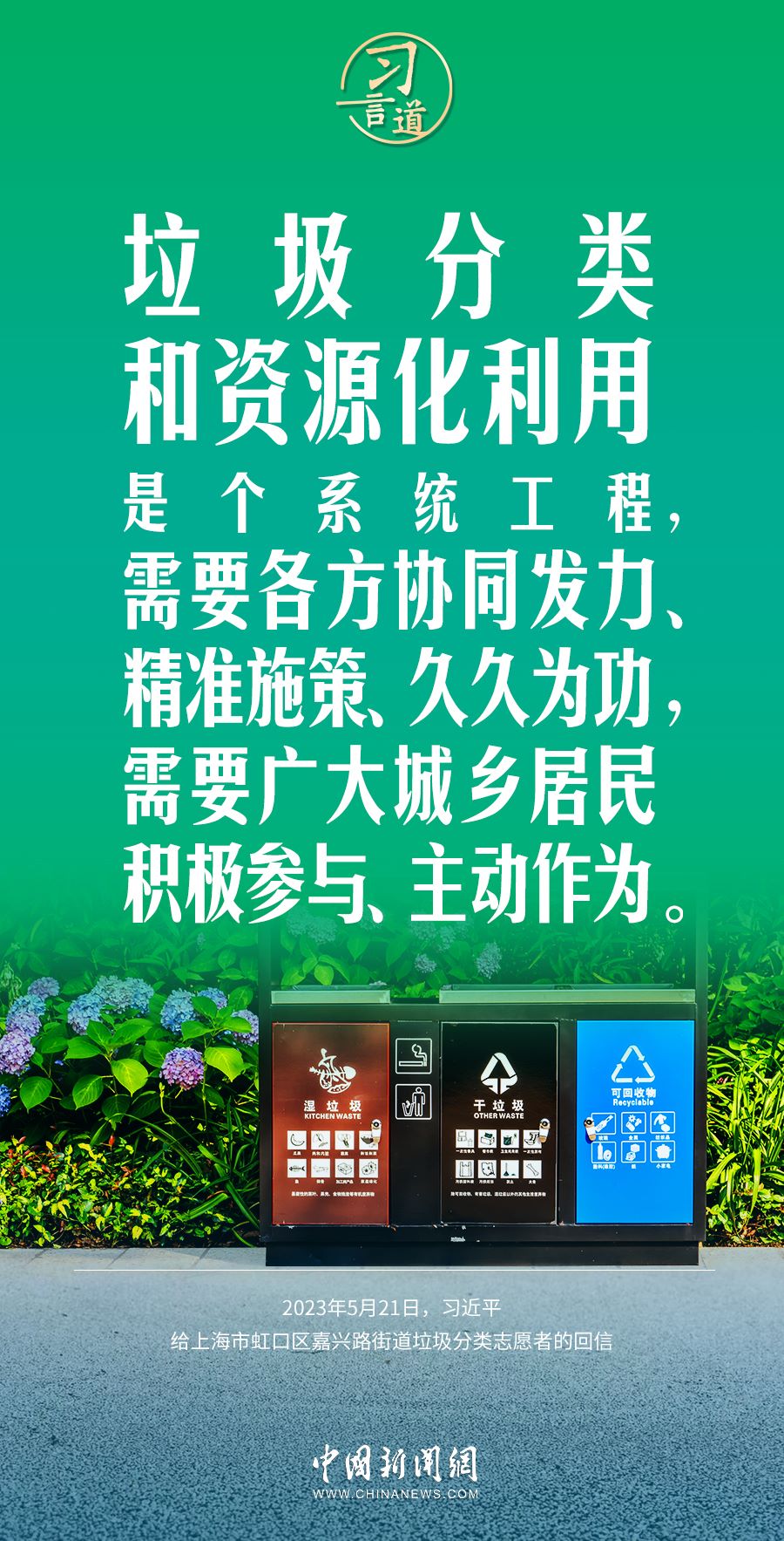 習(xí)近平總書記十分關(guān)注垃圾分類和資源化利用,多次作出重要論述。