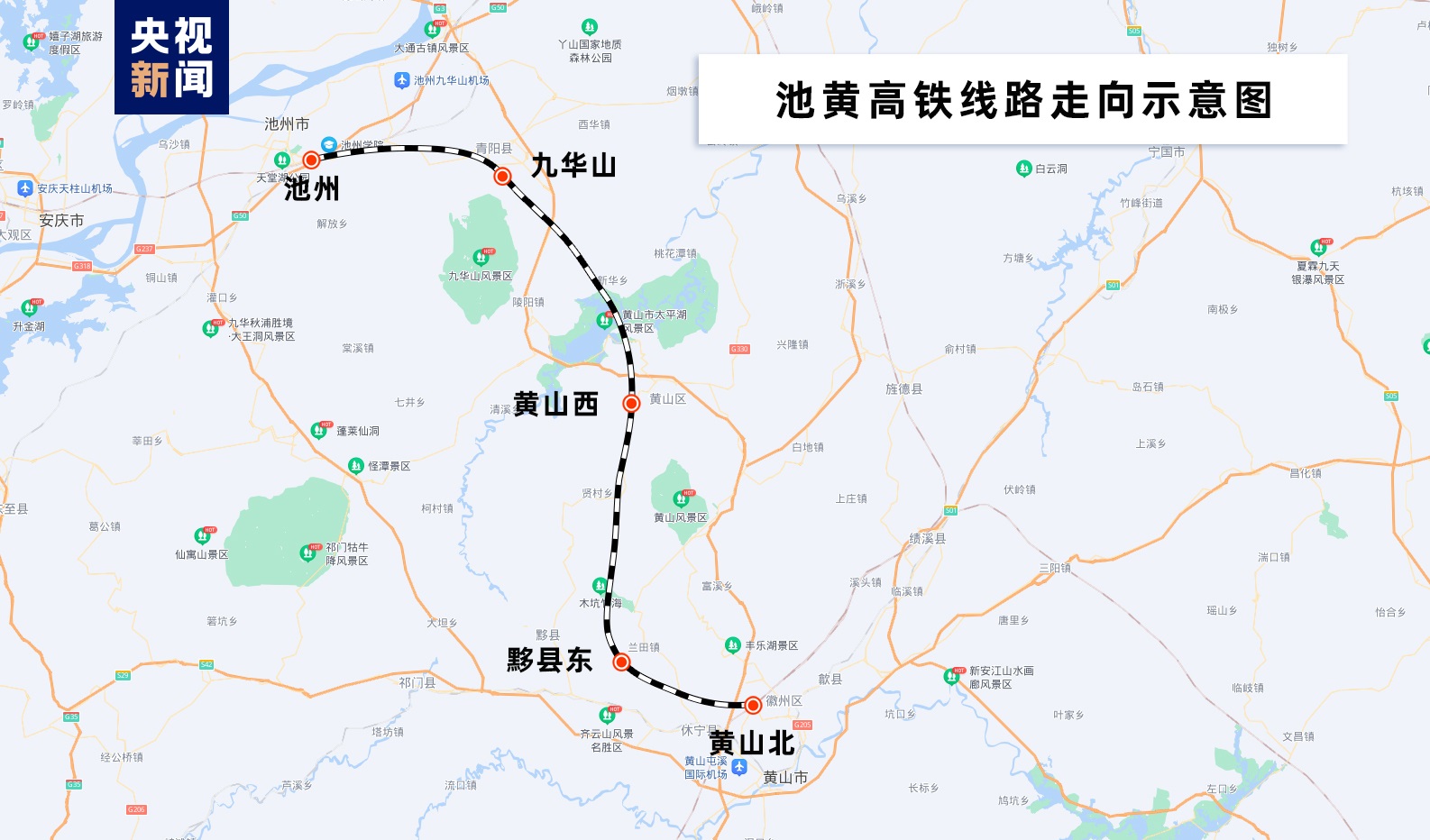 池黃高鐵是武漢至杭州高速鐵路通道的重要組成部分,線路起自池州站,至黟縣東站與在建昌景黃高鐵共站并線至黃山北站,新建正線長(zhǎng)約125公里,設(shè)計(jì)時(shí)速350公里,全線隧道34座,隧道占比60.8%,總投資額183.7億元,全線設(shè)池州、九華山、黃山西、黟縣東、黃山北等5座車(chē)站。池黃高鐵通車(chē)后,將成為串聯(lián)起黃山、九華山的黃金旅游線路。
