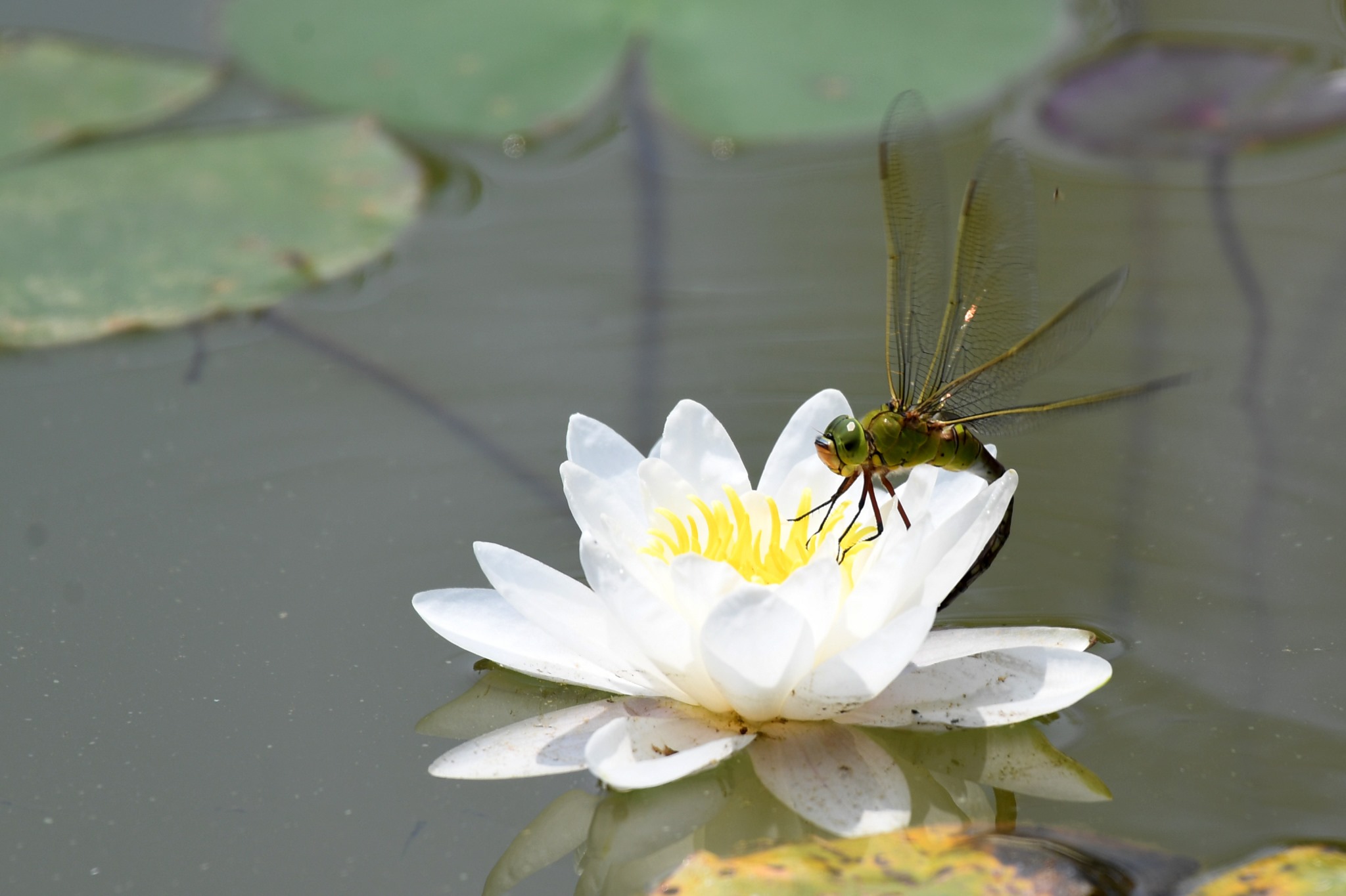 貴州仁懷:池塘睡蓮綻放 蜻蜓花間歇息