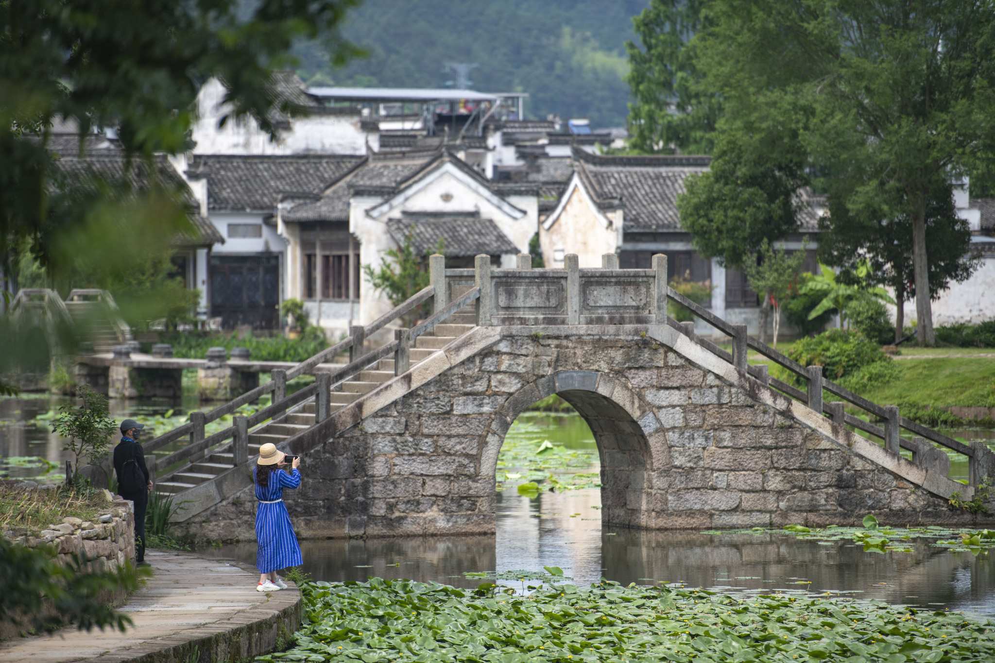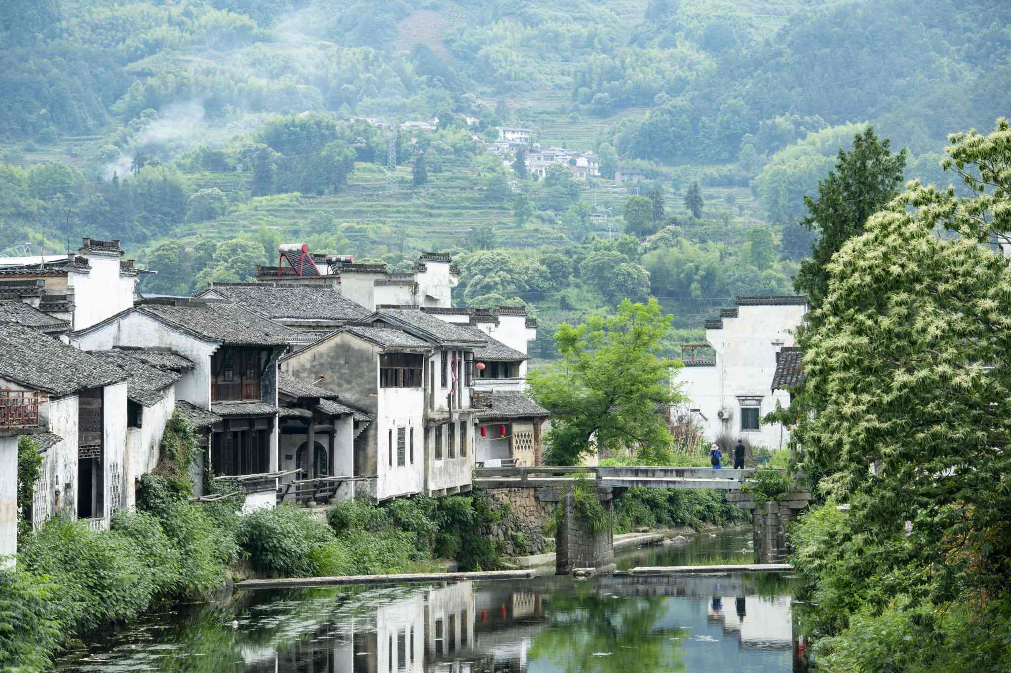 2023年5月26日,安徽黃山,徽州區(qū)呈坎村綠樹成蔭碧水蕩漾。視覺中國
