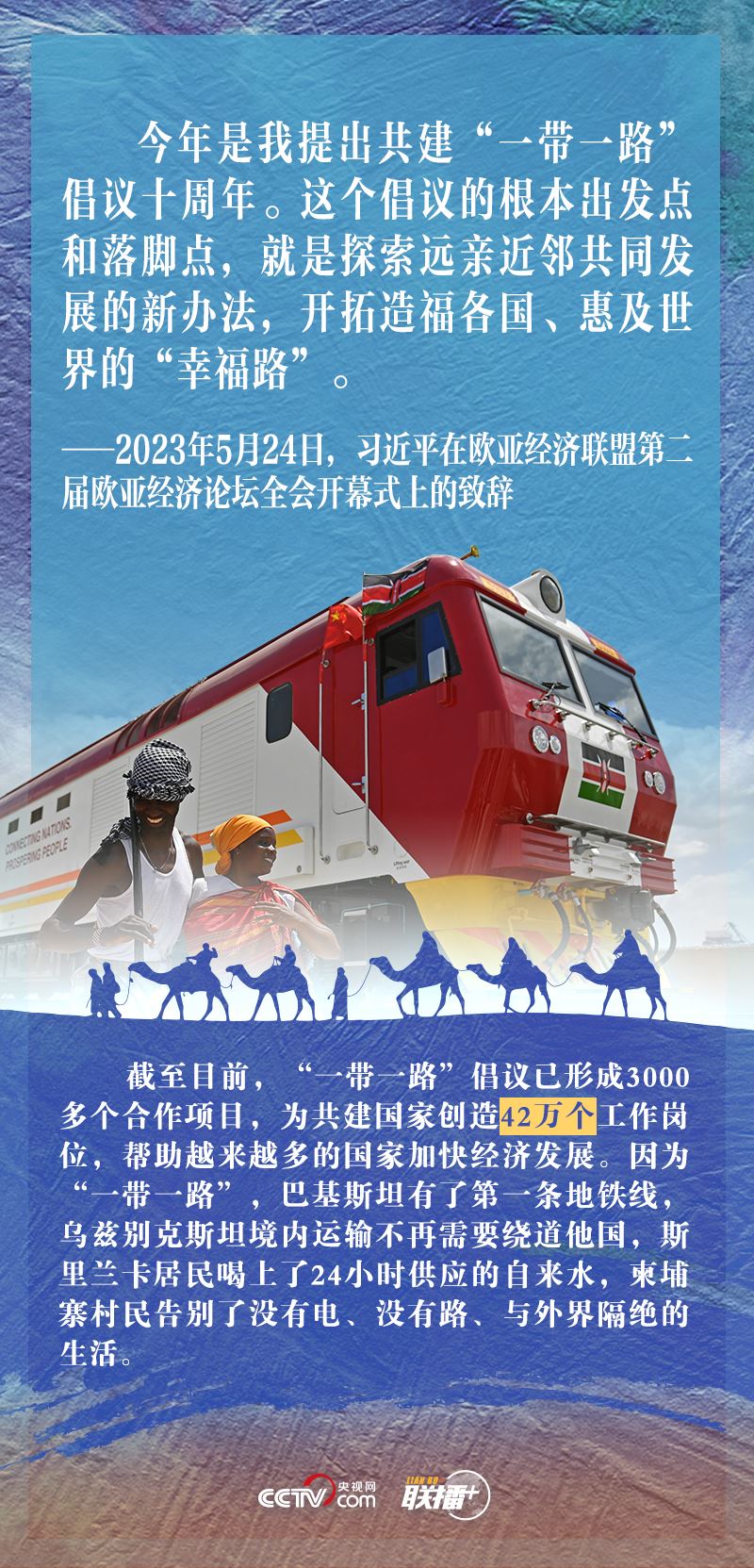 “今年是我提出共建‘一帶一路’倡議十周年。這個倡議的根本出發(fā)點和落腳點,就是探索遠親近鄰共同發(fā)展的新辦法,開拓造福各國、惠及世界的‘幸福路’?!?月24日,習近平主席在出席歐亞經(jīng)濟聯(lián)盟第二屆歐亞經(jīng)濟論壇全會開幕式并致辭時指出。