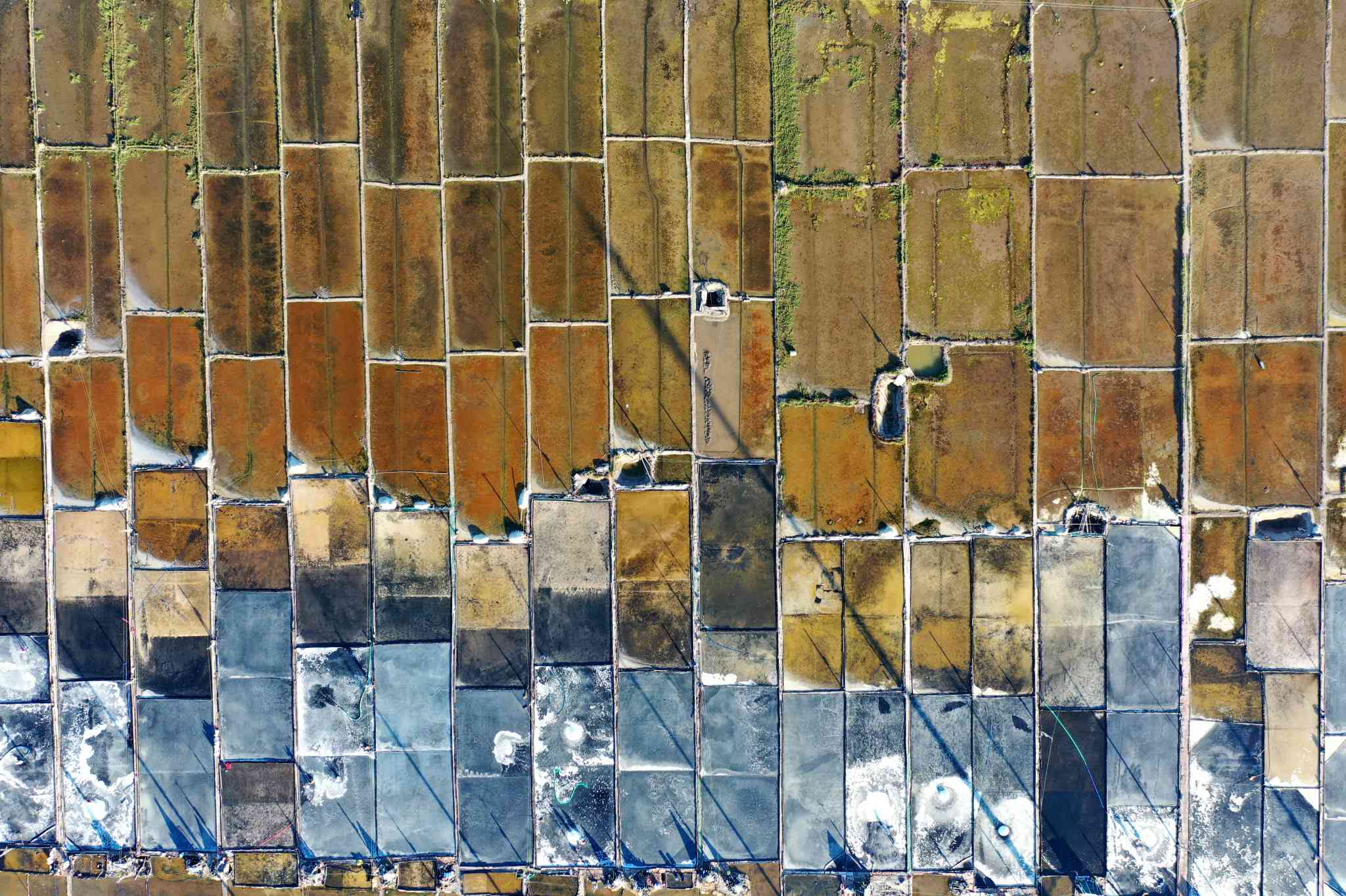 2023年5月29日,浙江溫州,在樂清市南塘鎮(zhèn)山馬曬鹽場,鹽民在鹽田里收鹽。視覺中國
