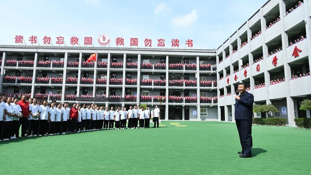 2021年9月14日,在陜西榆林市綏德實(shí)驗(yàn)中學(xué)考察時(shí),習(xí)近平總書記走進(jìn)教室、操場,觀看同學(xué)們書法練習(xí)和體育鍛煉,同大家親切交流。他勉勵(lì)同學(xué)們:“真正做全面發(fā)展的人才,一步一步地走下去,最終都能成為對社會(huì)有用的人、國之棟梁?!薄暗轮求w美勞全面發(fā)展,字字千金,都是經(jīng)過多年總結(jié)摸索才得出來的。”