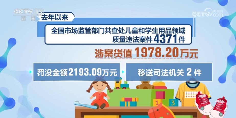2022年以來,全國市場監(jiān)管部門共查處兒童和學生用品領域質(zhì)量違法案件4371件,涉案貨值1978.20萬元,罰沒金額2193.09萬元,移送司法機關2件。