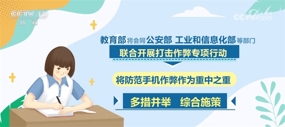 同時,會同公安部、工業(yè)和信息化部等部門聯(lián)合開展打擊作弊專項行動,將防范手機作弊作為重中之重,多措并舉、綜合施策,指導各地強化人防、物防、技防等措施,嚴格入場安檢規(guī)范,強化考場監(jiān)考巡考,嚴厲打擊利用手機等通信設備作弊行為。對于在高考中存在作弊行為的考生和人員,將依法依規(guī)嚴肅處理,堅決維護高考的公平公正。