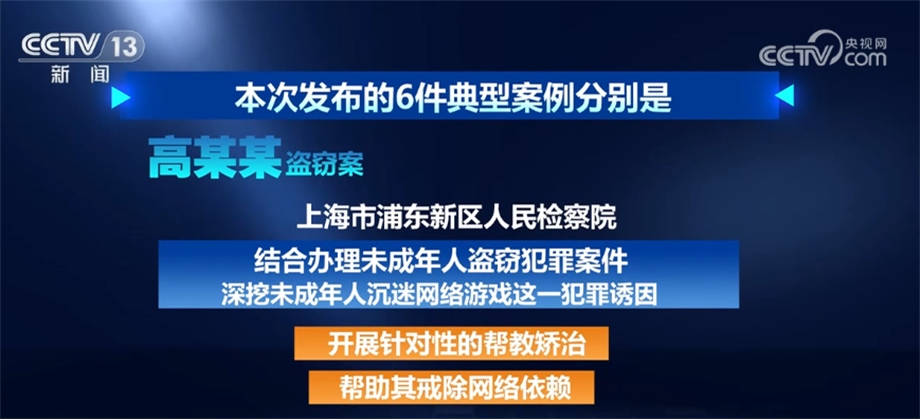 高某某盜竊案。上海市浦東新區(qū)人民檢察院結合辦理未成年人盜竊犯罪案件,深挖未成年人沉迷網(wǎng)絡游戲這一犯罪誘因,開展針對性的幫教矯治,幫助其戒除網(wǎng)絡依賴。